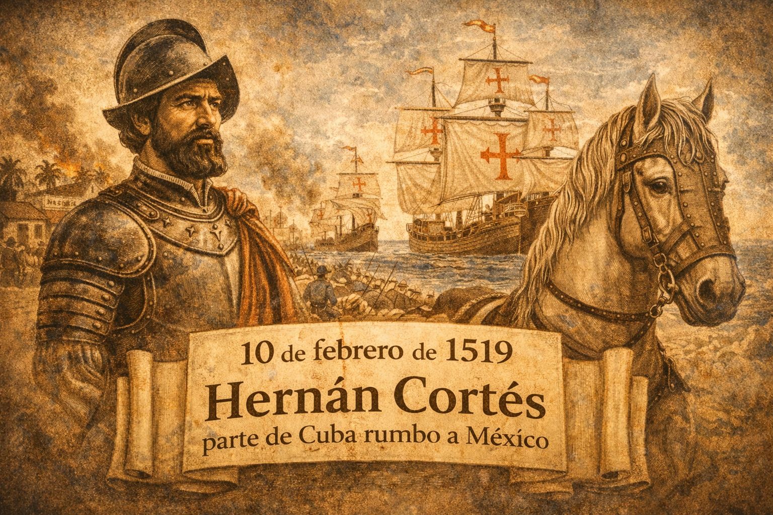 El 10 de febrero de 1519, Hernán Cortés zarpó del puerto de Santiago de Cuba al frente de una expedición compuesta por once naves, alrededor de 500 hombres, algunos caballos y piezas de artillería, con rumbo a las costas del actual territorio mexicano.