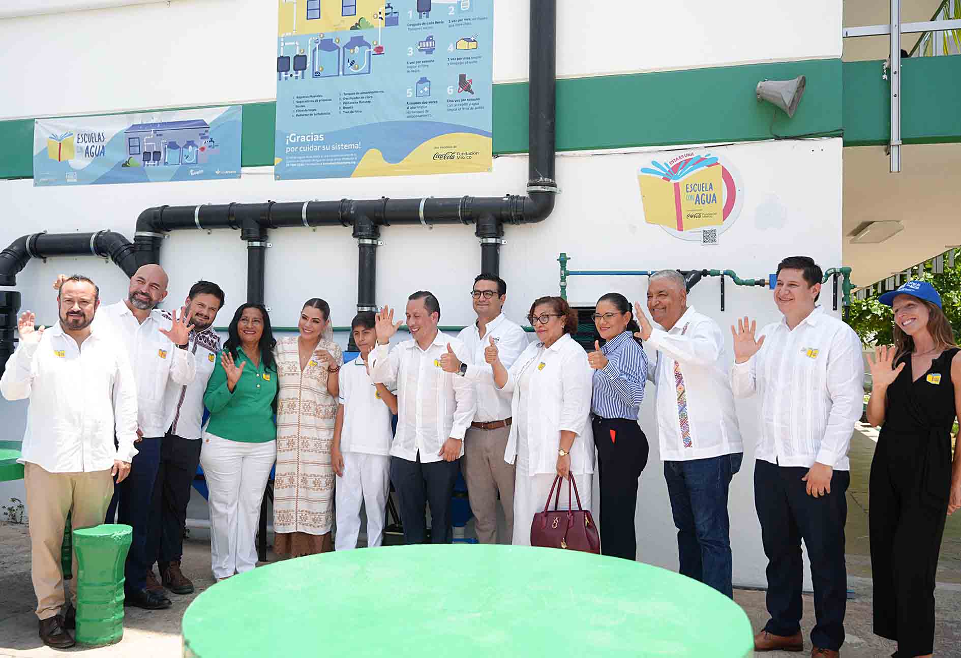 El gerente de Innovación y Fortalecimiento Institucional de CONAGUA, Amílcar Ganado Díaz, y el director de Asuntos Corporativos y Gubernamentales de Coca-Cola FEMSA, Aldo Castrejón Gamiño, explicaron que el programa Escuelas con Agua permitirá recolectar entre 500 mil y un millón de litros de agua al año, otorgará autonomía hídrica a cada plantel y beneficiará a más de siete mil estudiantes, además de promover la cultura del uso responsable del recurso.