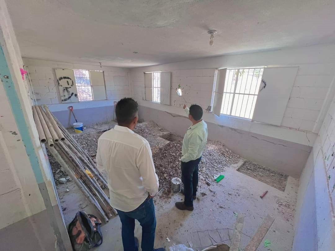 Este martes se verificaron las obras de construcción de la aula educativa en la Telesecundaria «Álvaro Gálvez y Fuentes» , así como la introducción de la red de agua potable en calles de la colonia Lomas Campestres.