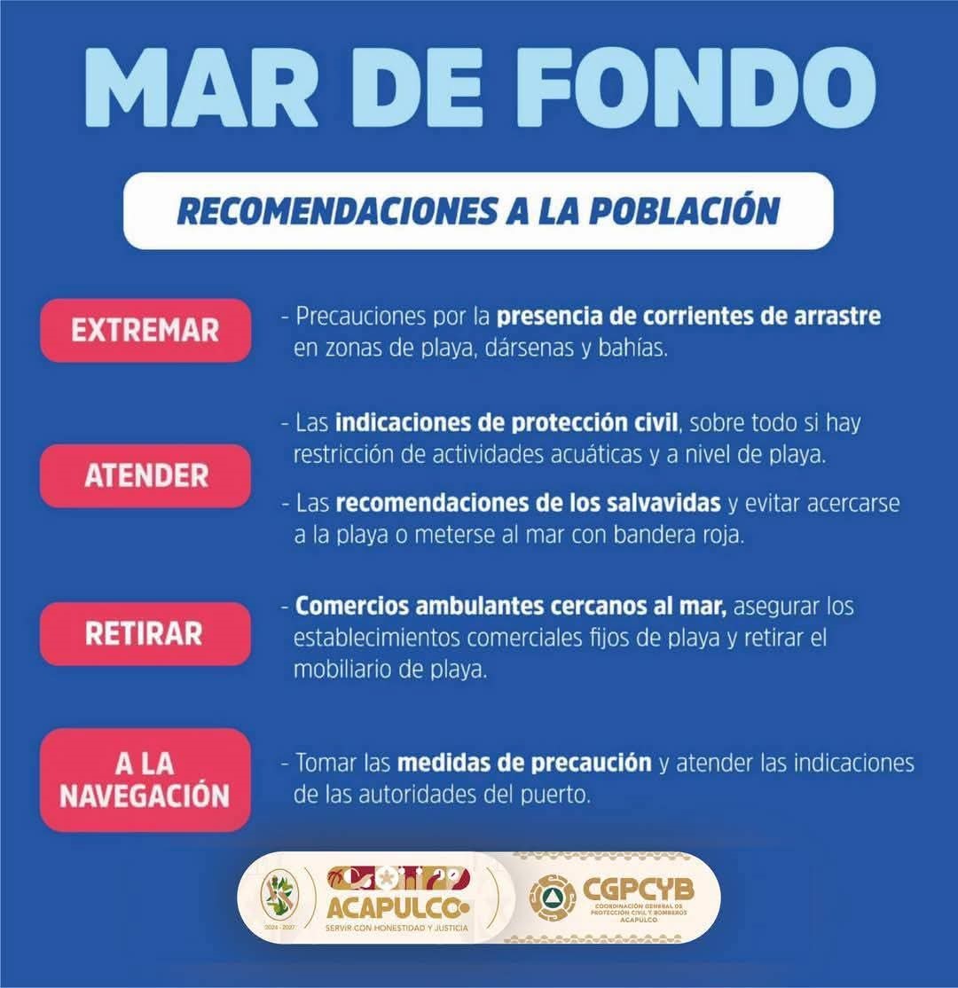 También se recomienda mantenerse informados a través de canales oficiales y atender las indicaciones de Protección Civil, Capitanía de Puerto y autoridades municipales.