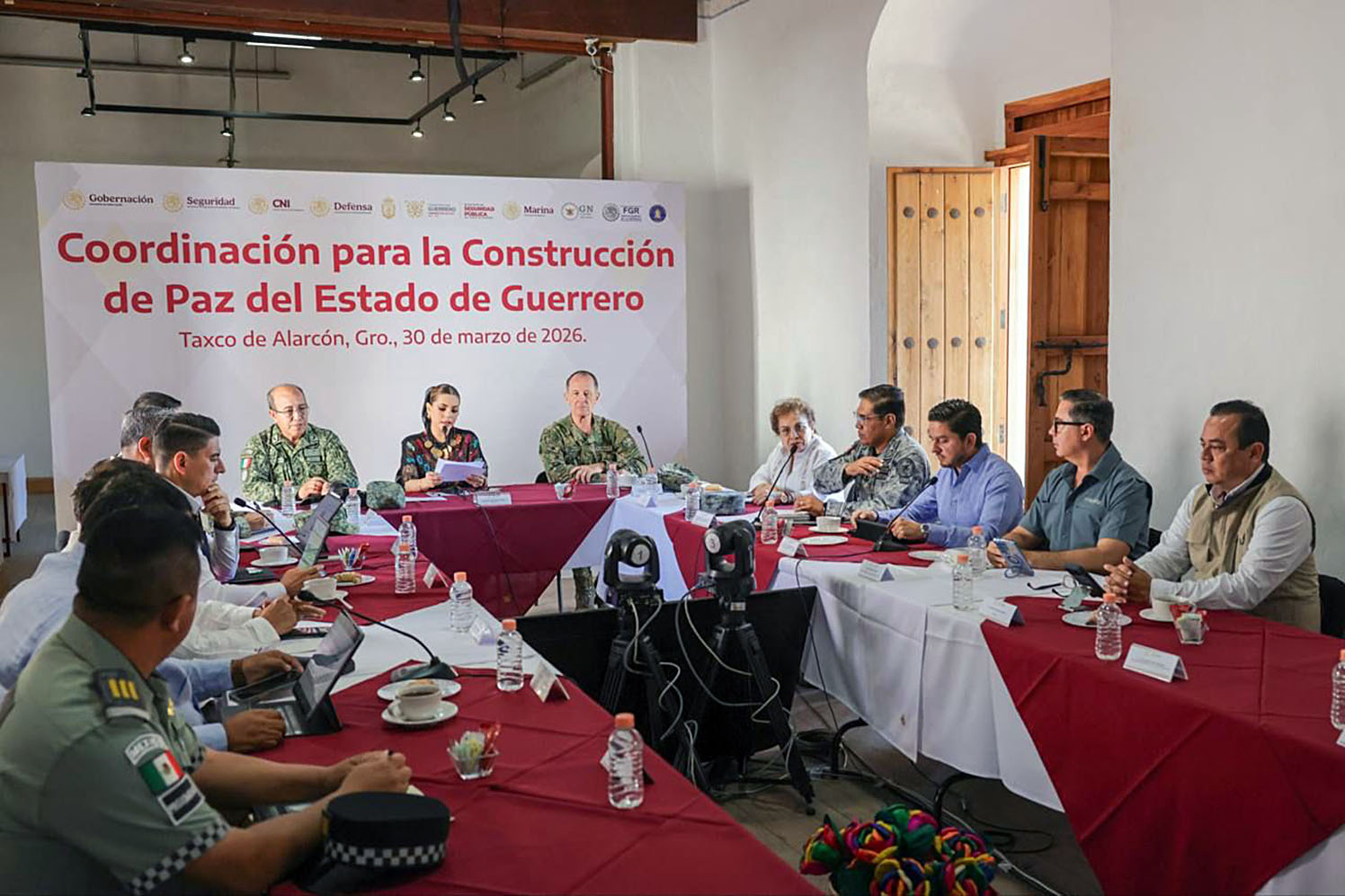 Taxco, Gro., Desde este Pueblo Mágico y Platero, en el marco de la temporada vacacional de Semana Santa 2026, la gobernadora Evelyn Salgado Pineda encabezó los trabajos de la Mesa de Coordinación para la Construcción de la Paz, con autoridades de los tres órdenes de gobierno y el presidente municipal, Juan Andrés Vega.