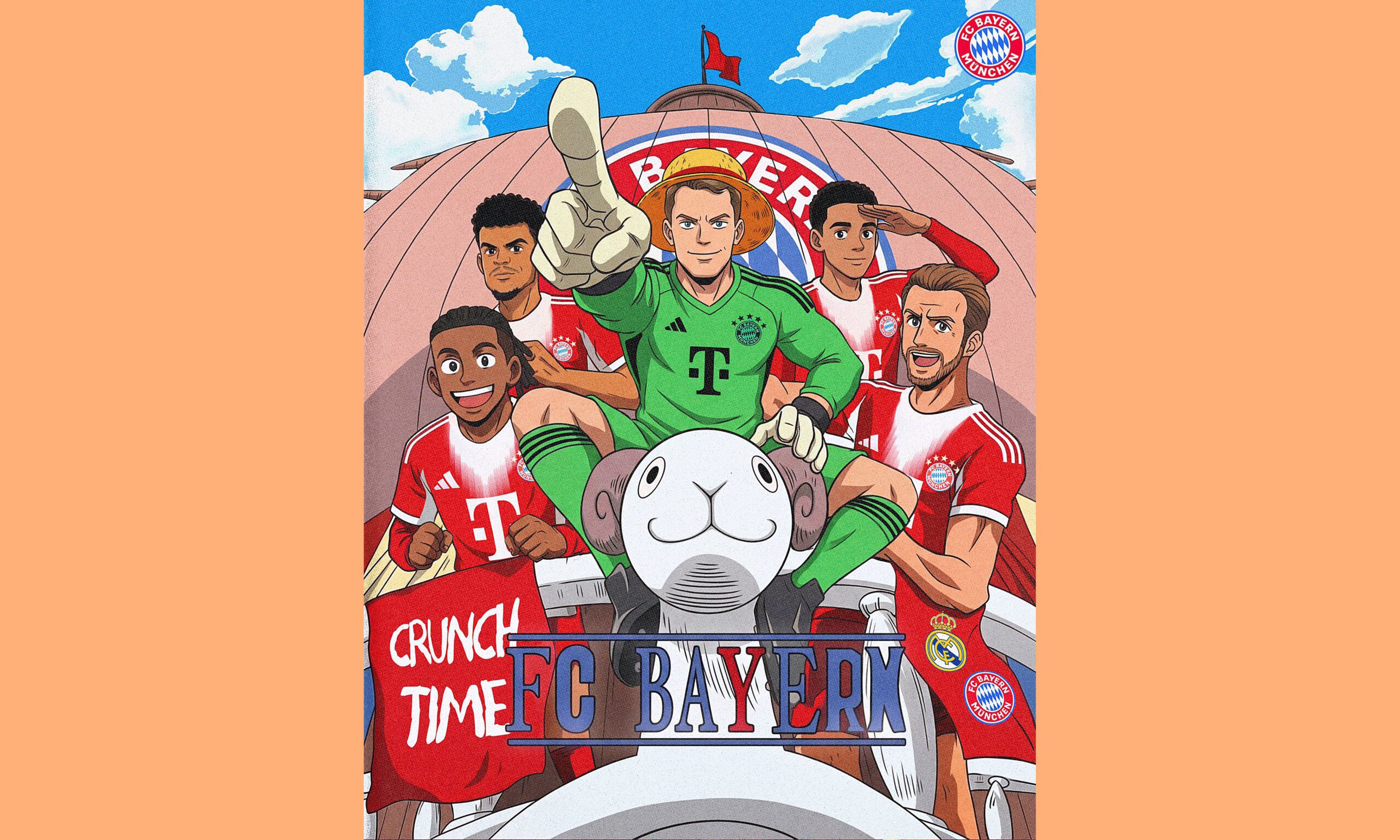 Múnich, Alemania, El Bayern Munich sorprendió a sus seguidores con una publicación muy peculiar en redes sociales: una ilustración al estilo del anime One Piece que representa a sus jugadores listos para la próxima aventura, previo al duelo de ida de los Cuartos de Final de la UEFA Champions League contra el Real Madrid.