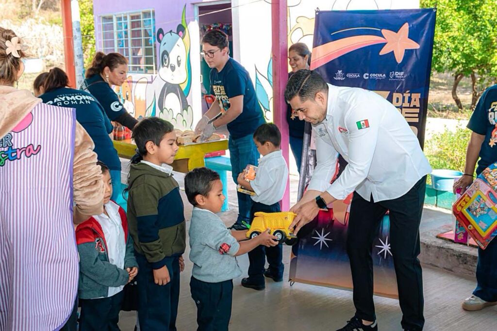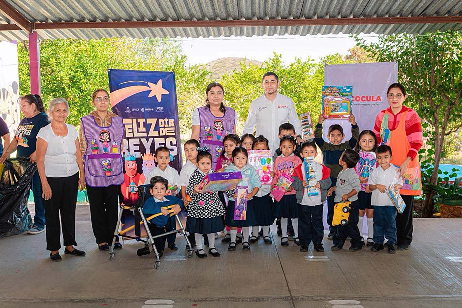 Cocula, Gro., En el marco del “Día de Reyes”, el día de ayer el Presidente Municipal Arq. Raymond Román Alarcón y la Presidenta del DIF Municipal, Mtra. Yolanda Ramirez Crespo, realizaron la entrega de juguetes y partieron la tradicional rosca en el Jardín de Niños «Emperador Cuauhtémoc», la Escuela Primaria «Minerva» y con los niños menores de 3 años en la cancha de Apango, llevando momentos de alegría y convivencia a los infantes.