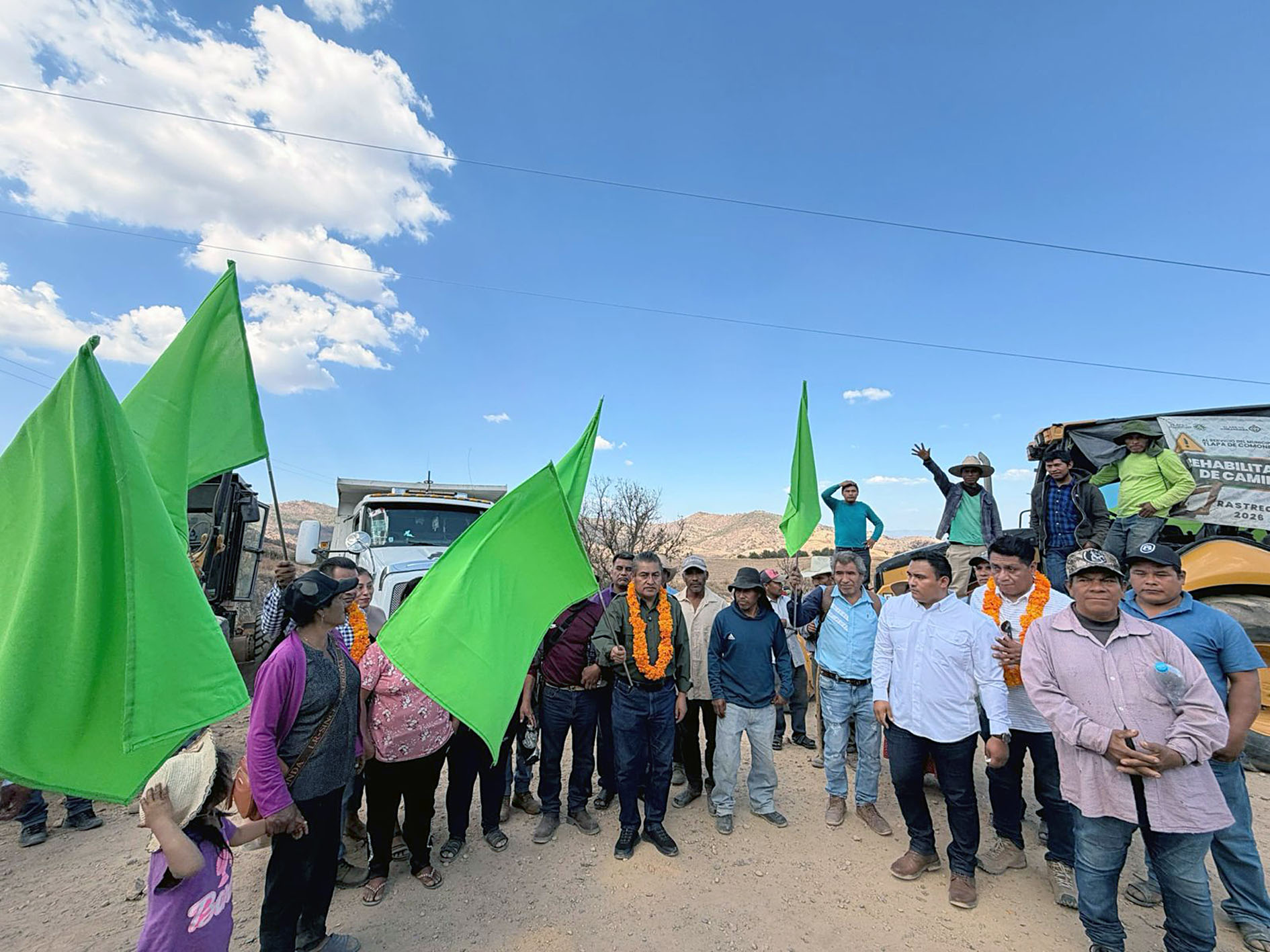 Tlapa, Gro., Con el objetivo de mejorar las condiciones de acceso y comunicación para las comunidades del Corazón de la Montaña, el presidente municipal Gilberto Solano Arreaga dio el banderazo de arranque a los trabajos de apertura de caminos y rastreo en la localidad de San Marcos, anexo de Chiepetepec.