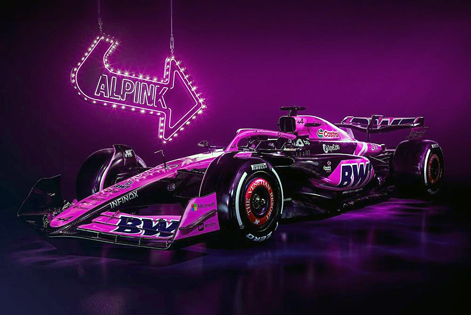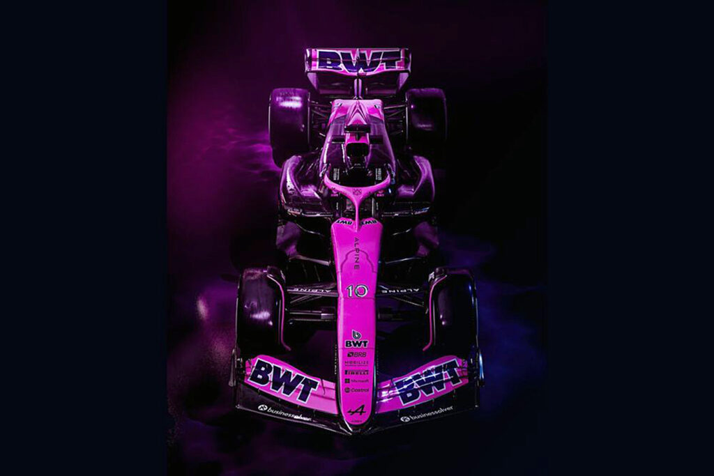 El diseño es una colaboración con el socio principal del equipo BWT. Anteriormente, Alpine ya había lucido este color gracias a esta asociación.