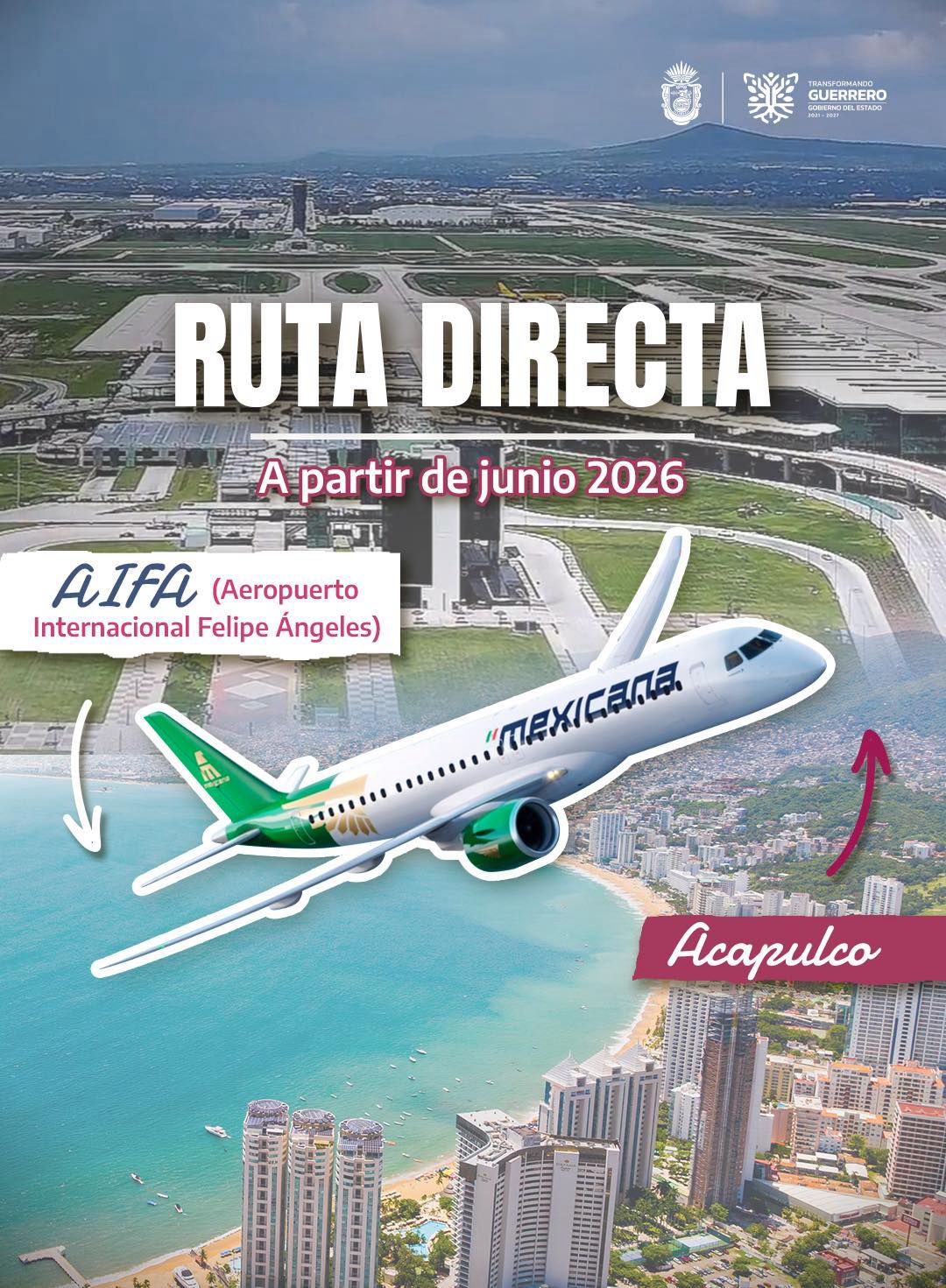 Chilpancingo, Gro., Abril 2.- A partir de junio se abrirá una ruta aérea entre el Aeropuerto Internacional “Felipe Ángeles” y el de Acapulco, informó el director de Mexicana de Aviación, Leobardo Ávila Bojórquez.