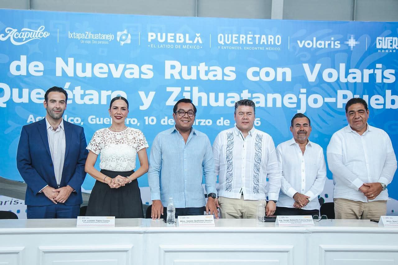 A su vez, el director de Desarrollo de Mercados de Volaris, Jorge Roberto García Rojas, informó que el vuelo Acapulco-Querétaro operará los martes, jueves y domingos, mientras que la ruta Zihuatanejo-Puebla contará con frecuencias los martes, jueves y sábados, lo que ampliará las opciones de traslado y movilidad entre ambas regiones.