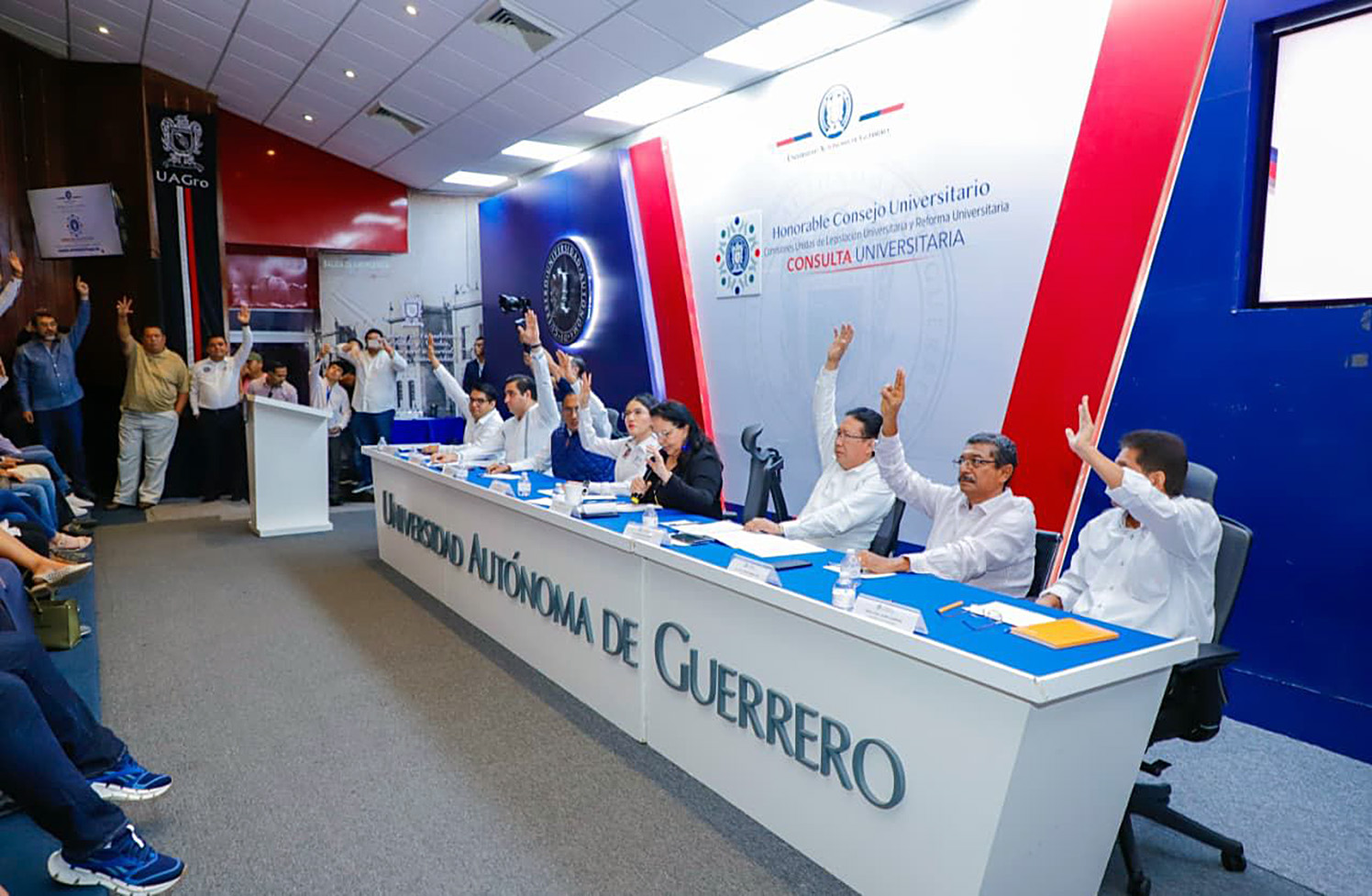 Chilpancingo, Gro., Este jueves, estudiantes, docentes, directivos de escuelas preparatorias y facultades, consejeros universitarios, personal administrativo y representantes sindicales de la Universidad Autónoma de Guerrero (UAGro) aprobaron la armonización del Estatuto y los reglamentos institucionales con las reformas a la Ley Orgánica, en las que se establece la prohibición de la reelección inmediata de rectoría, direcciones y consejerías universitarias.