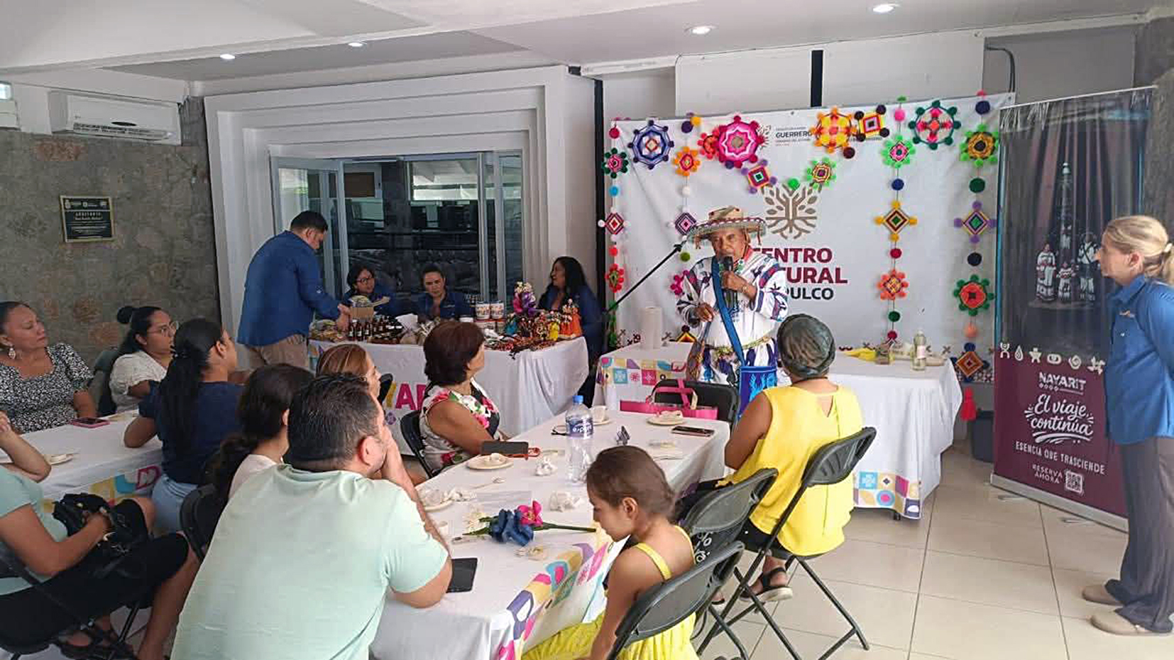 Acapulco, Gro., En el marco del Tianguis Turístico de México, una fiesta de orgullo, celebración y proyección al futuro, iniciaron con gran participación los talleres gratuitos impartidos por artesanas y artesanos nayaritas en el Centro Cultural Acapulco, donde se fortalecen las actividades para mostrar la diversidad cultural de las entidades del país.