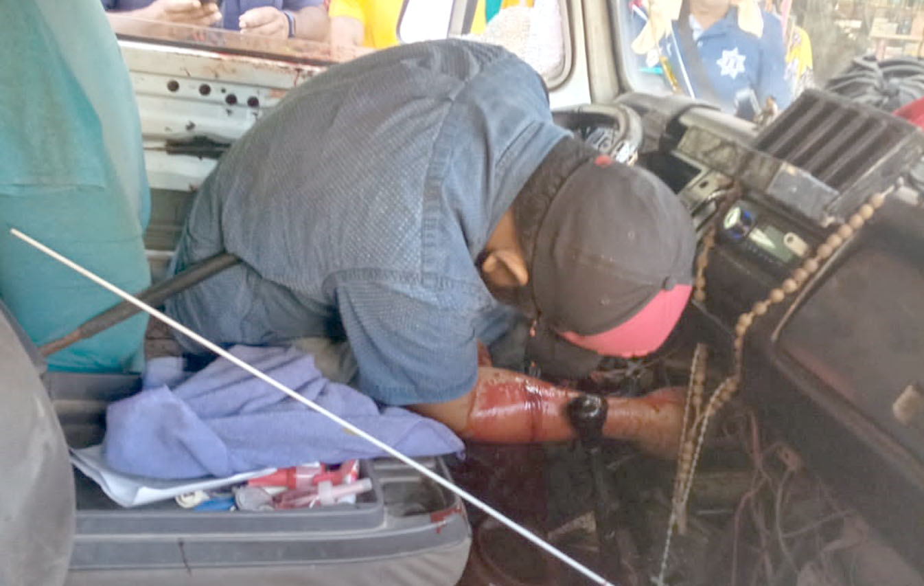 La víctima quedó dentro de una combi de modelo atrasado de la marca Wolkswagen, marcada con el número económico 0035.