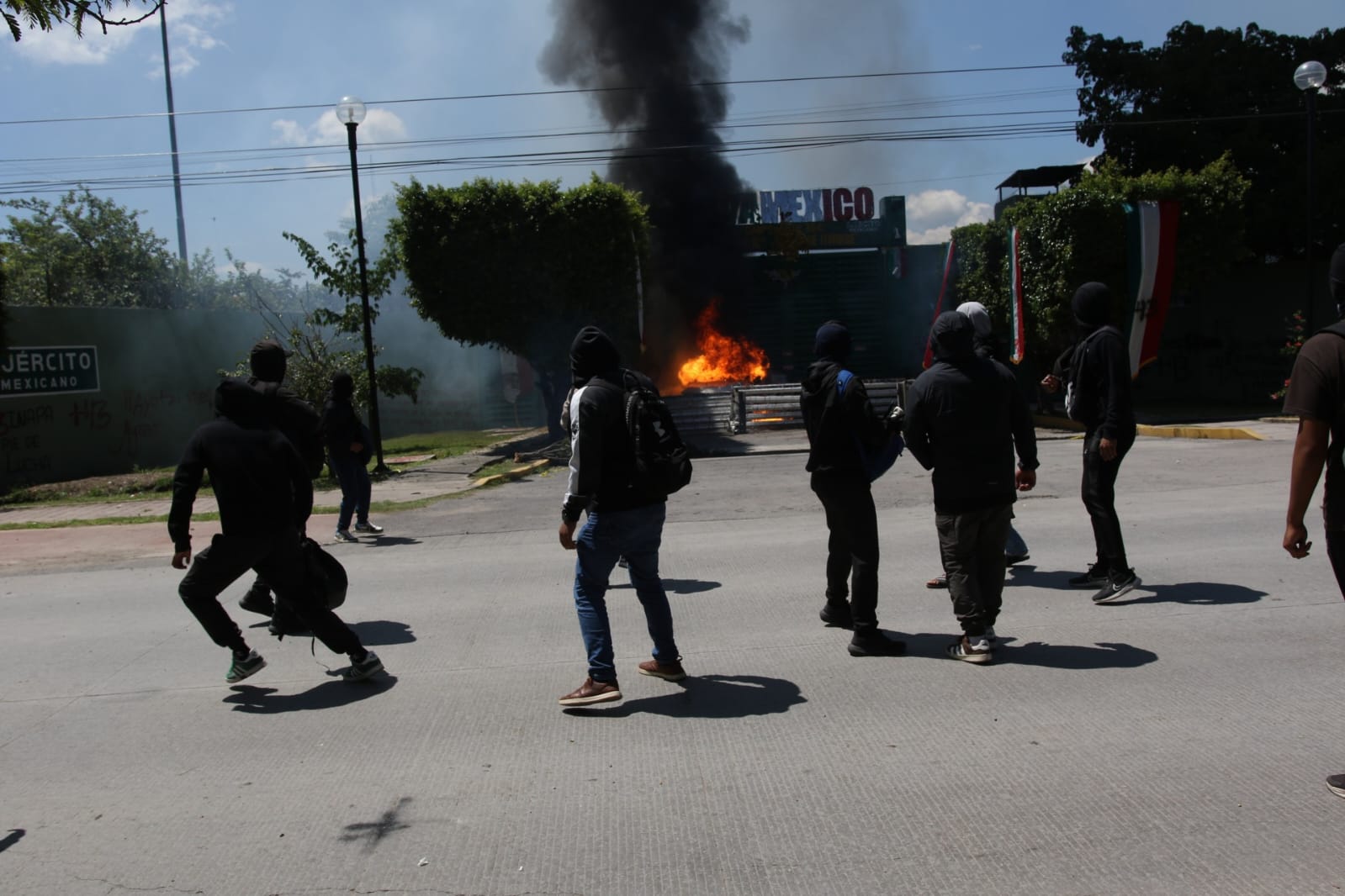 Iguala, Gro., septiembre 23 de 2025 (IRZA).- Por segundo día consecutivo, normalistas rurales de Ayotzinapa realizaron acciones de protesta contra instalaciones del Ejército. Este martes, se dirigieron al 27 Batallón de Infantería ubicado en esta ciudad de la zona Norte del estado, donde atacaron sus instalaciones con más de 50 explosivos de fabricación casera y quemaron una camioneta en el acceso vehicular.
