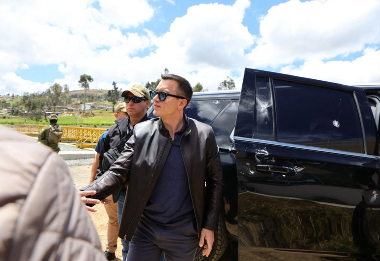 Frente al ataque, la ministra de Energía y Ambiente, Inés Manzano, hizo la denuncia ante la Fiscalía General del Estado por intento de asesinato. “Antes de llegar al estadio, unas 500 personas comenzaron a lanzar piedras. Además, se observan signos de impactos de bala en el vehículo del presidente”, dijo ante varios periodistas frente a las instalaciones de la Fiscalía.