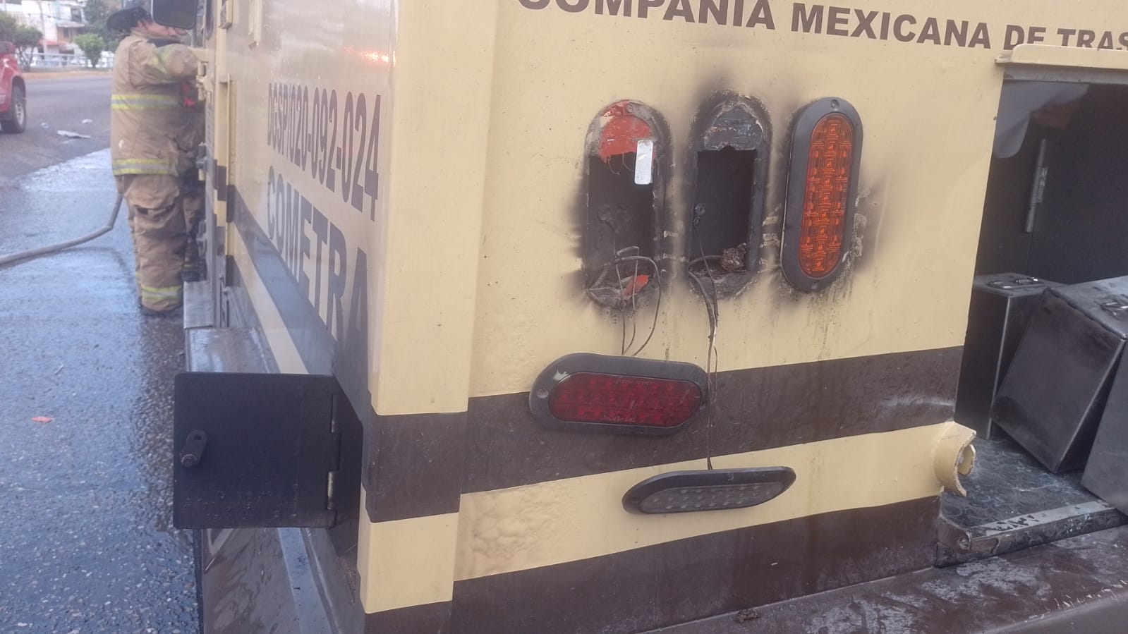 Acapulco, Guerrero, Febrero 3.- Personal de la Coordinación General de Protección Civil y Bomberos de Acapulco atendió el incendio de un vehículo de traslado de valores, registrado la mañana de este lunes en la colonia Vista Hermosa, sobre la carretera Acapulco-México, donde el fuego ya se encontraba controlado al arribo de las corporaciones de emergencia.