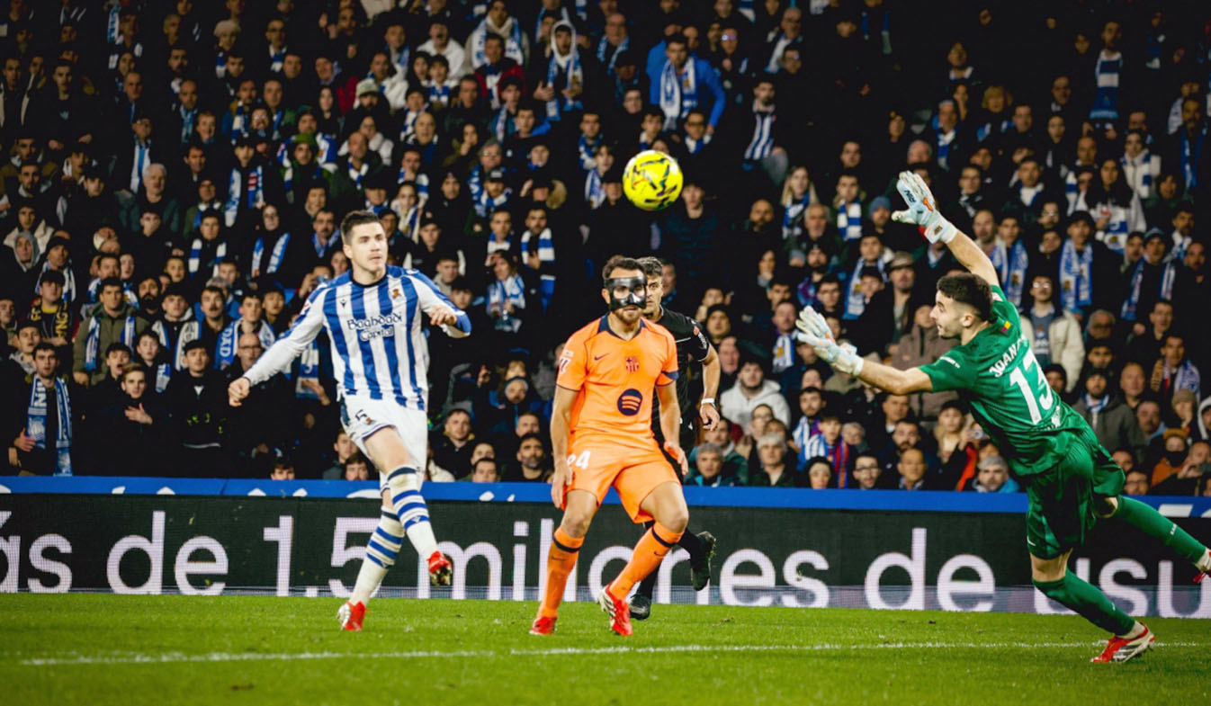 La Real dio el primer golpe de la tarde gracias al tanto que convirtió Mikel Oyarzabal, quien vacunó al Barça al minuto 32 del compromiso.