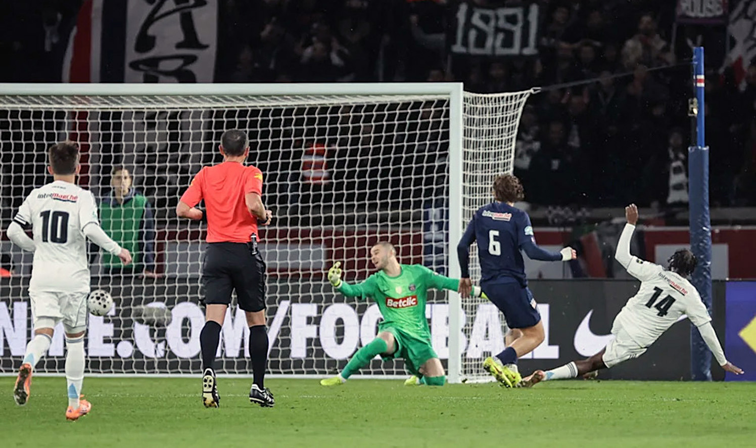 Jonathan Ikoné, delantero formado en el PSG, marcó (74’) el único tanto del partido en una de las pocas incursiones de su equipo en el campo del campeón de Europa, que multiplicó las ocasiones sin lograr encontrar premio.
