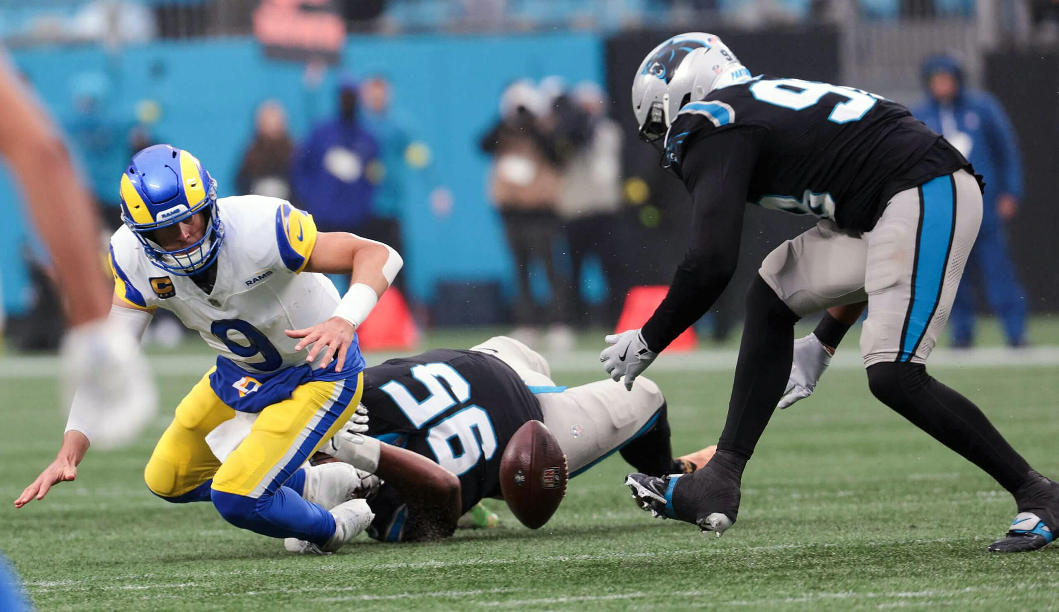 El juego terrestre fue la otra vía para frenar el ritmo de los Rams. Chuba Hubbard sumó 83 yardas, Rico Dowdle agregó 58, y los Panthers dominaron la posesión en la segunda mitad. Solo una penalización de holding sobre Ja’Tavion Sanders abrió una ventana para la reacción angelina.
