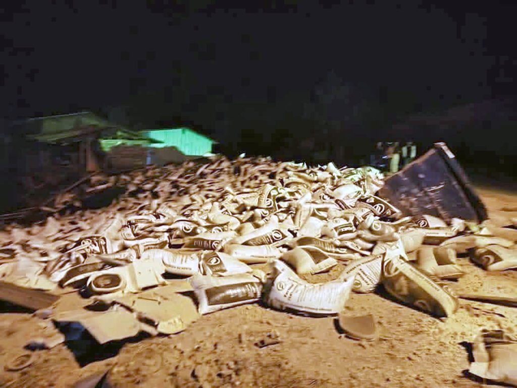Chilpancingo, Gro., Un camión cargado con fertilizante volcó la madrugada de este miércoles en el crucero de Laguna Seca-El Capulín, en el municipio de Acatepec, región Montaña.