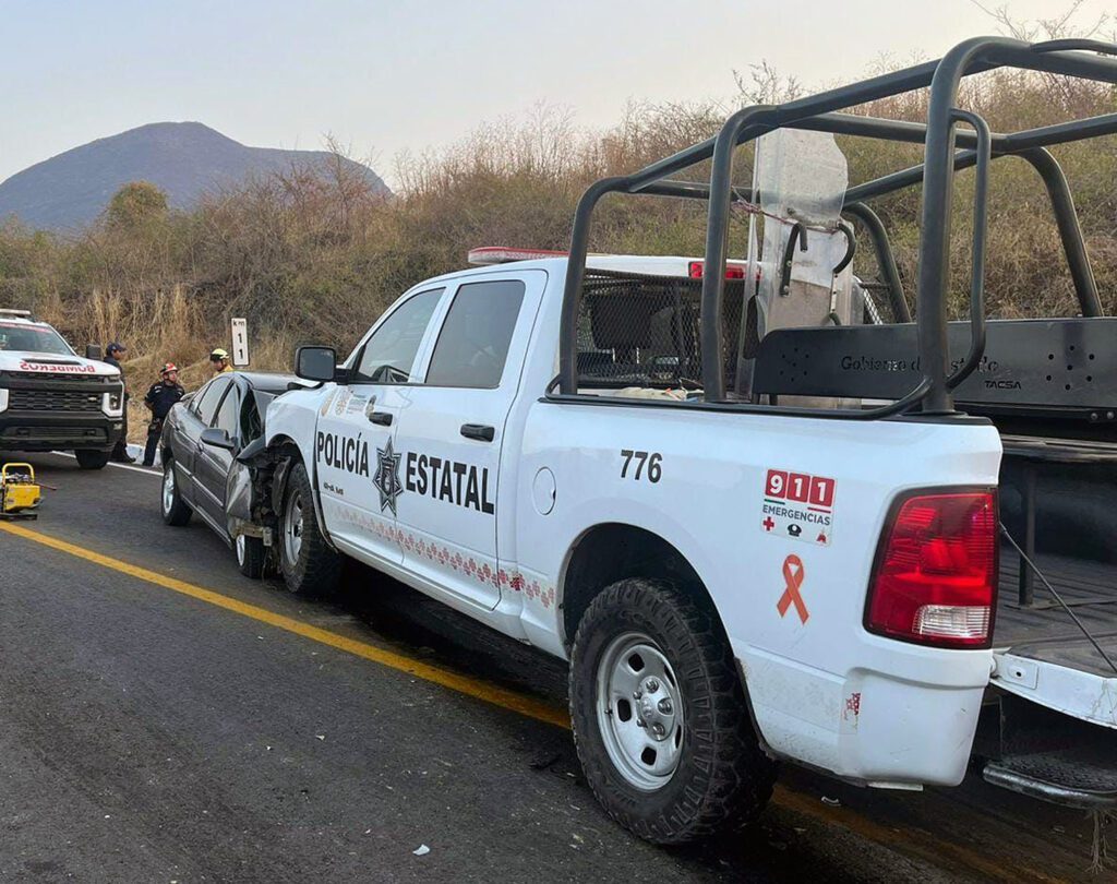 En el percance estuvieron involucrados la patrulla número 776 de la Policía del Estado y un vehículo Nissan tipo sedán Sentra color gris oscuro, con placas HAU-446-G, los cuales colisionaron de frente.