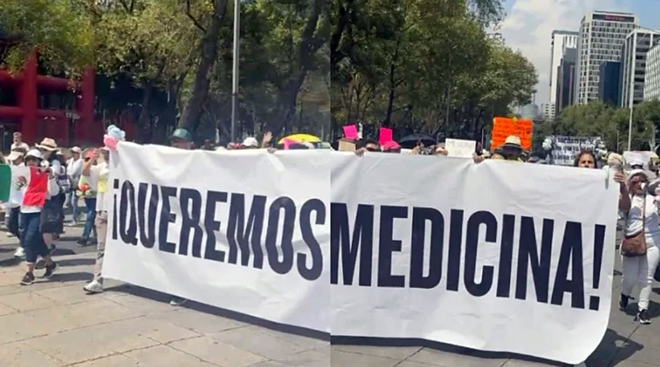 El contingente caminó desde el Ángel de la Independencia y culminó su recorrido en el Zócalo de la Ciudad de México, portando banderas de México y cartulinas en las que exigían medicamentos en los hospitales en el país.