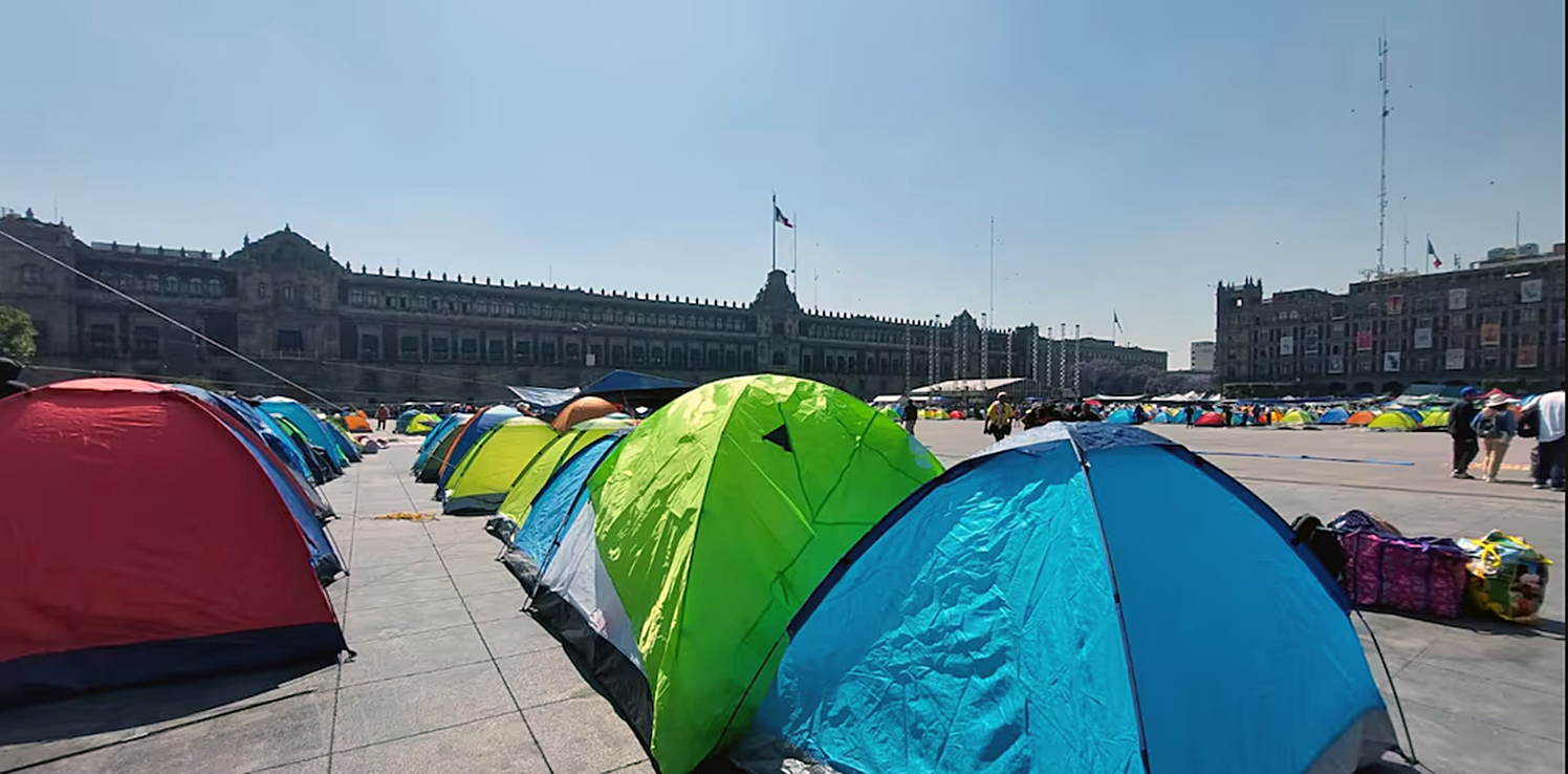 Con casas de campaña, maletas, lonas y kilométricos lazos para extender un campamento provisional sobre Plaza de la Constitución, el magisterio se apostó bajo la advertencia de que no se retirarán hasta saber que sus demandas han sido cumplidas.