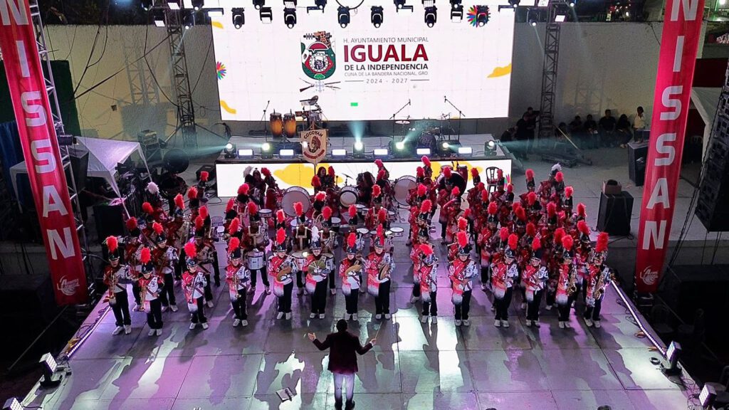 Iguala, Gro., El día de ayer, la Cocoyan Marching Band participó con gran éxito en el Teatro del Pueblo, como parte de las actividades de la Feria de la Bandera 2026, ofreciendo una destacada presentación que llenó de energía y orgullo a todos los asistentes.