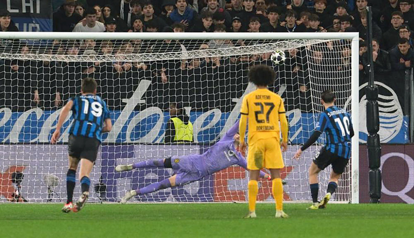 Bérgamo, Italia, Atalanta transformó un penal con el último toque del partido y tras una revisión de video, para vencer el miércoles 4-1 a Borussia Dortmund y asegurar un puesto en los octavos de final de la Liga de Campeones.