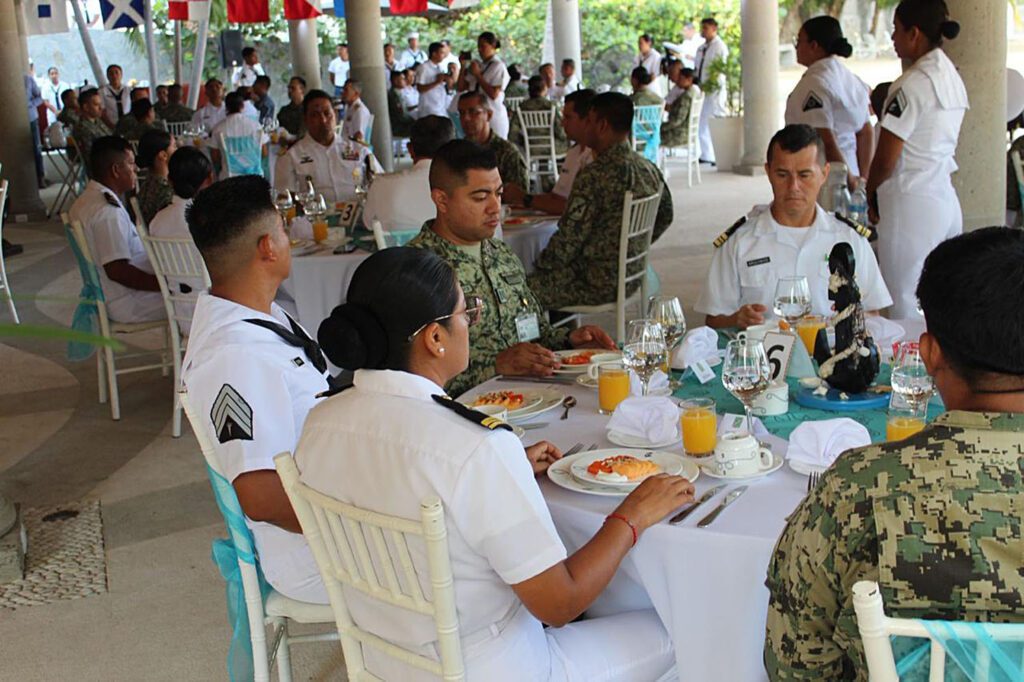 Acapulco, Gro., En el marco del CXIII Aniversario del Ejército Mexicano, la Octava Región Naval llevó a cabo un desayuno conmemorativo en honor al personal de la Secretaría de la Defensa Nacional, como reconocimiento a su labor en favor de la seguridad y bienestar del país.