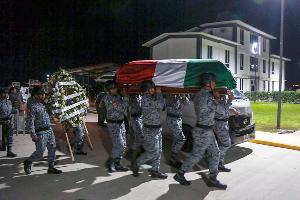 Durante el acto solemne, los ataúdes, cubiertos con la Bandera Nacional, fueron escoltados por una valla de honor conformada por personal operativo. El toque militar y el pase de lista marcaron uno de los momentos más significativos de la ceremonia, al evocar la ausencia definitiva de los elementos caídos en cumplimiento de su deber.