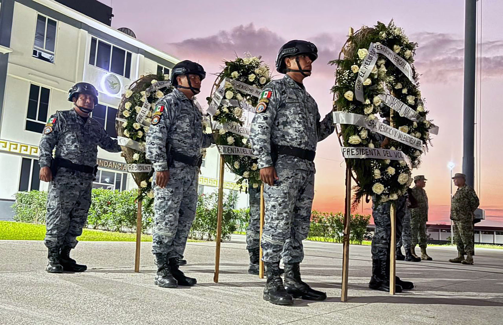 El homenaje fue encabezado por el coordinador estatal de la Guardia Nacional en Guerrero, Óscar García Ponce de León; el comandante de la IX Región Militar, general de división de Estado Mayor José Roberto Flores Montes de Oca, y el general brigadier de Estado Mayor Agustín Reyna Mendoza, junto con otros mandos del Ejército Mexicano en la entidad.