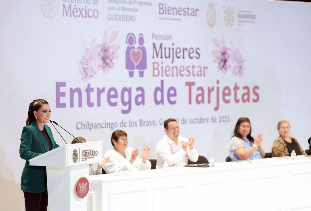 Chilpancingo, Gro., “Hoy la transformación que vive México avanza con las mujeres por delante”, afirmó la gobernadora Evelyn Salgado Pineda al encabezar la primera entrega de tarjetas del programa federal “Pensión Mujeres Bienestar”, que representa una inversión anual de mil 384 millones de pesos en beneficio de más de 42 mil guerrerenses, con la meta de llegar a 76 mil beneficiarias en todo el estado.