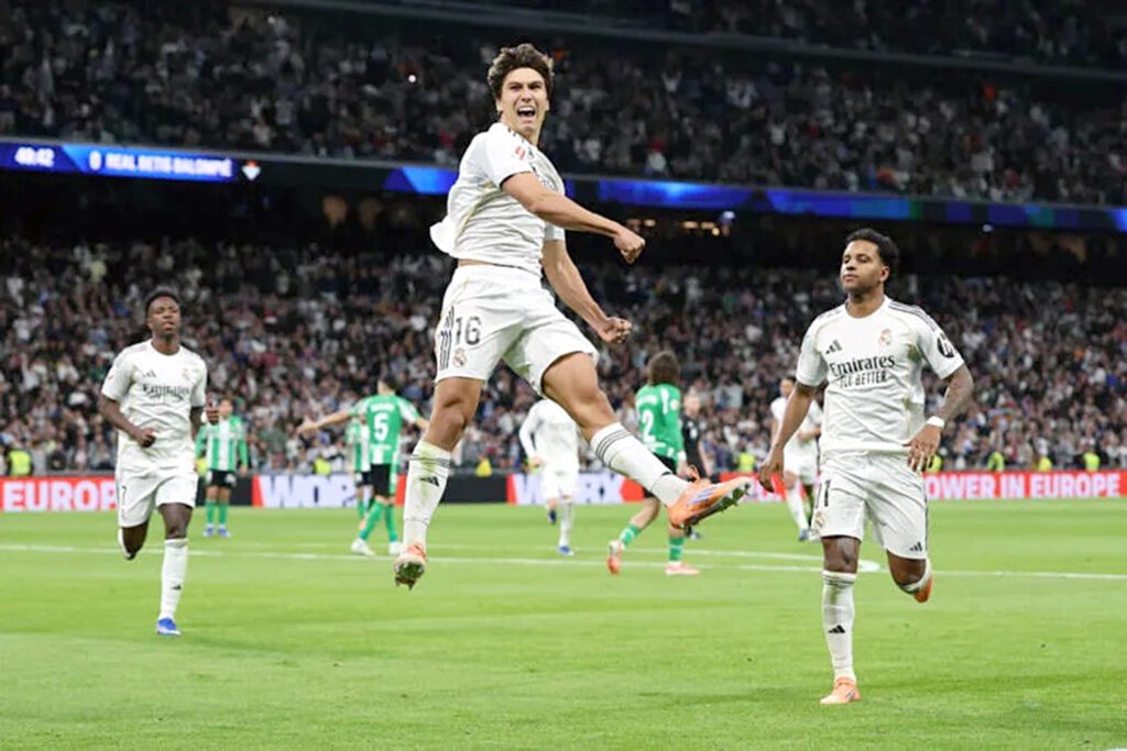 Madrid, España, Con un triplete de Gonzalo y dos goles de los también canteranos Asencio y Fran García, el Real Madrid derrotó este domingo 5-1 al Real Betis en la 18 fecha de LaLiga, un resultado que permite al conjunto blanco mantenerse en la estela del líder FC Barcelona.