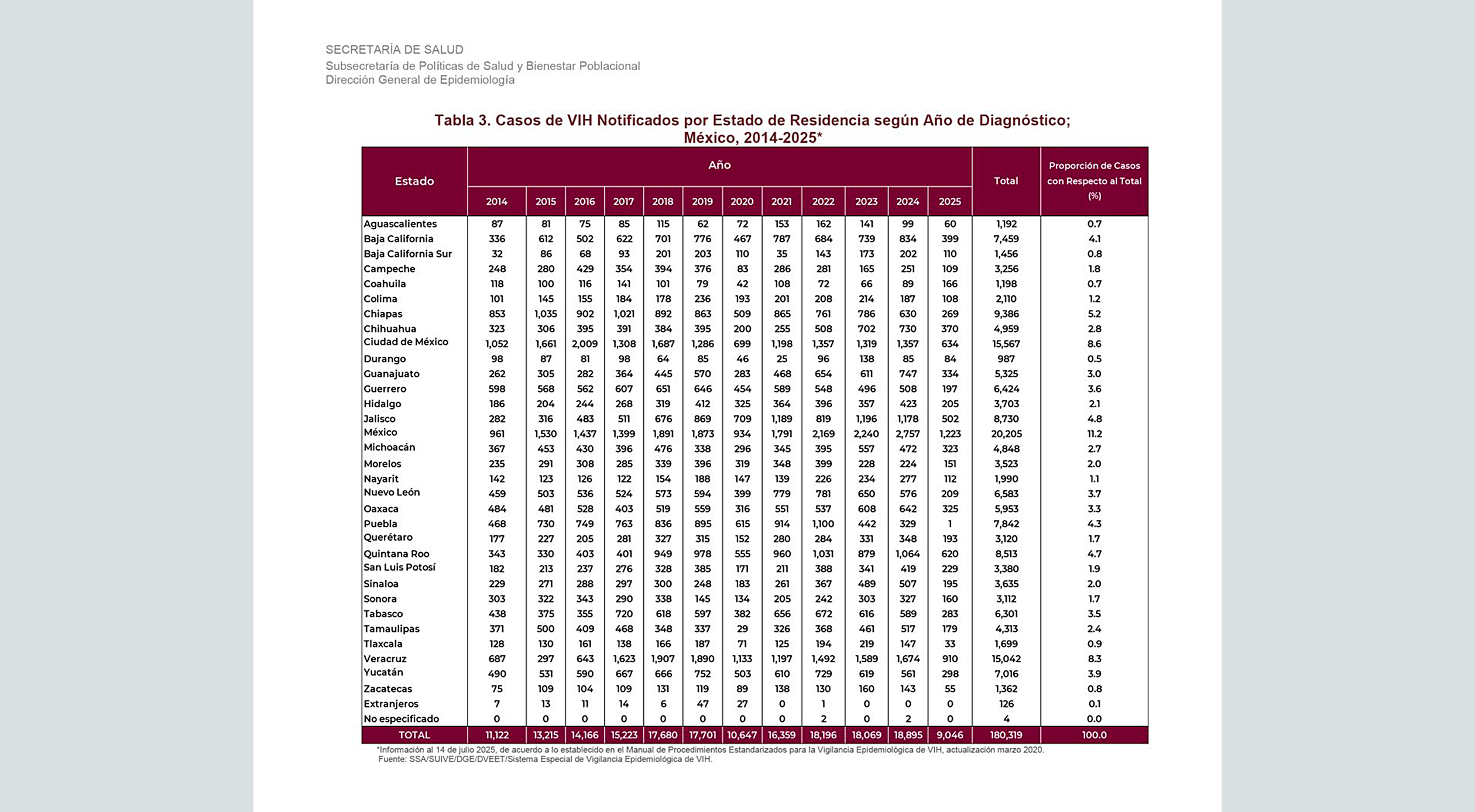 De acuerdo con el Sistema de Vigilancia Epidemiológica de VIH de la Dirección de Vigilancia Epidemiológica de Enfermedades Transmisibles, la estadística incluye los dos primeros trimestres de este año, con corte al 18 de septiembre.