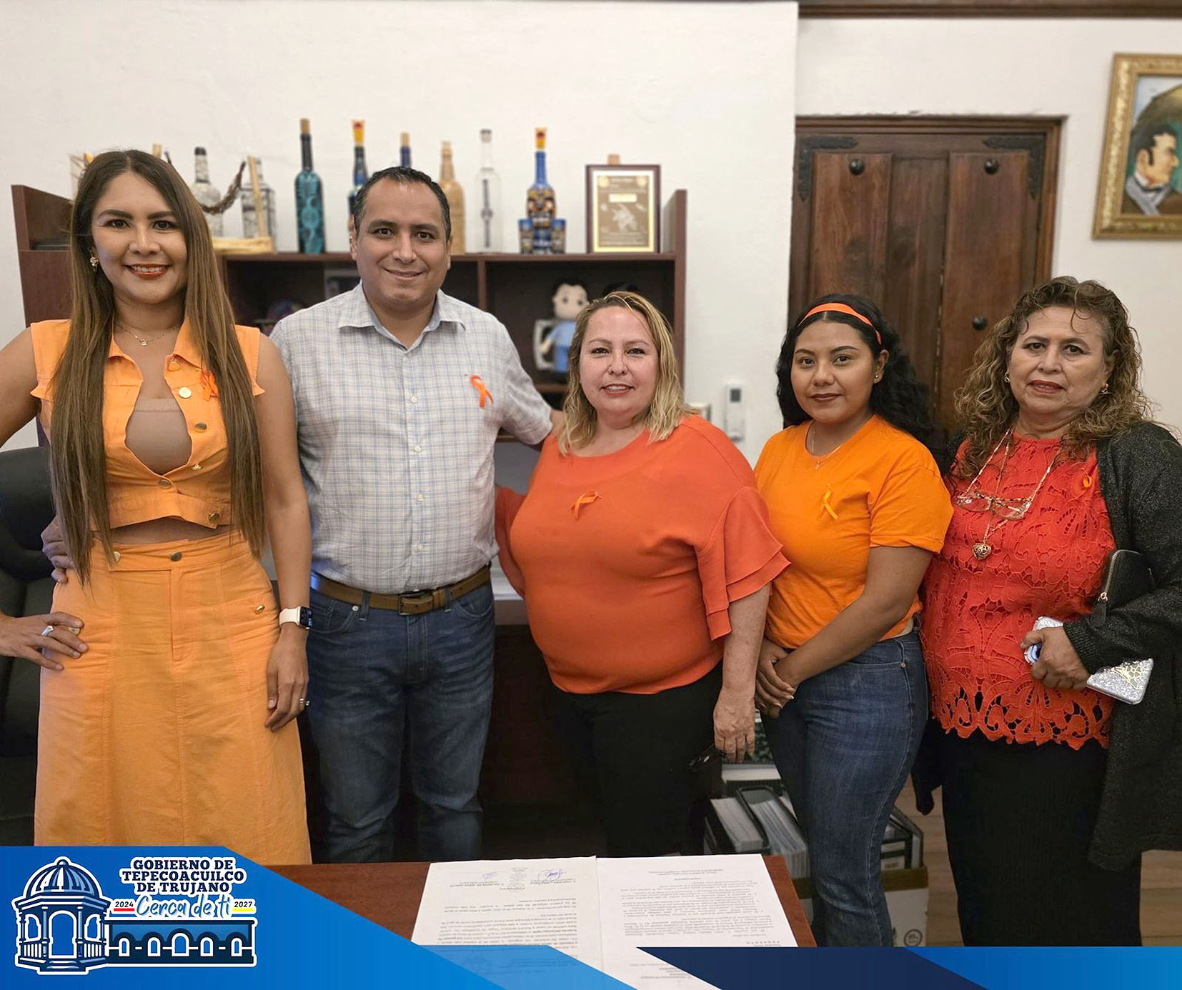 Como parte de esta jornada, se realizó la colocación de moños color naranja, tono distintivo de esta fecha a todas y todos los servidores públicos del Ayuntamiento, como un símbolo de solidaridad, sensibilización y rechazo absoluto a cualquier tipo de violencia hacia las mujeres.