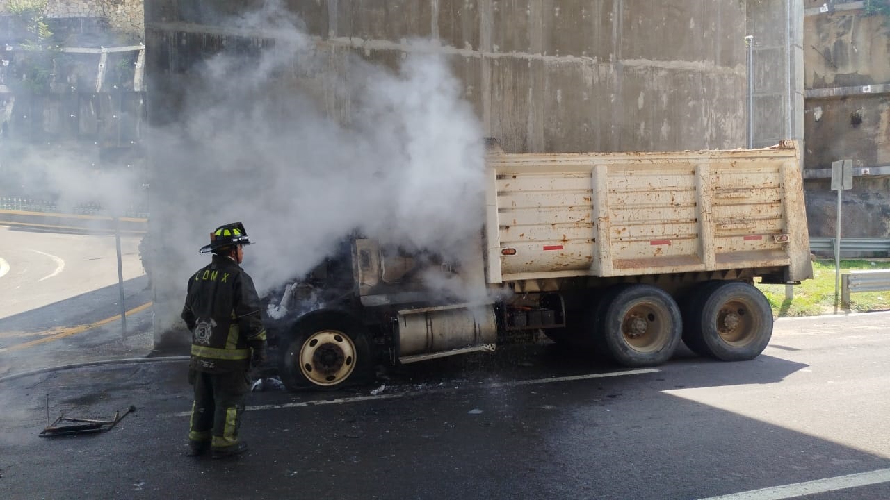 Acapulco, Gro., Octubre 31.- El Gobierno de Acapulco, a través de la Coordinación General de Protección Civil y Bomberos, controló el incendio de un tractocamión de volteo en la entrada del Macrotúnel, a la altura de la avenida Escénica.