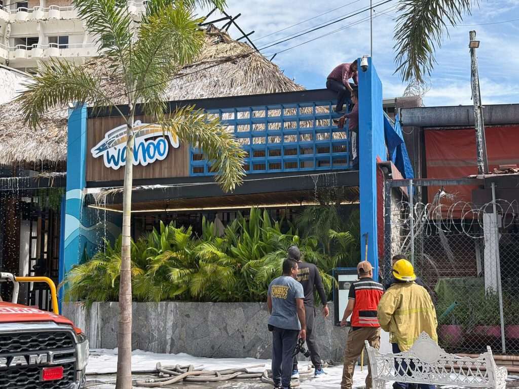 Acapulco, Gro., El departamento de Bomberos del Gobierno Municipal de Acapulco sofocó un incendio en la palapa del restaurante “Wahoo”, ubicado sobre la Costera Miguel Alemán, evitando que las llamas afectaran otras áreas del establecimiento.