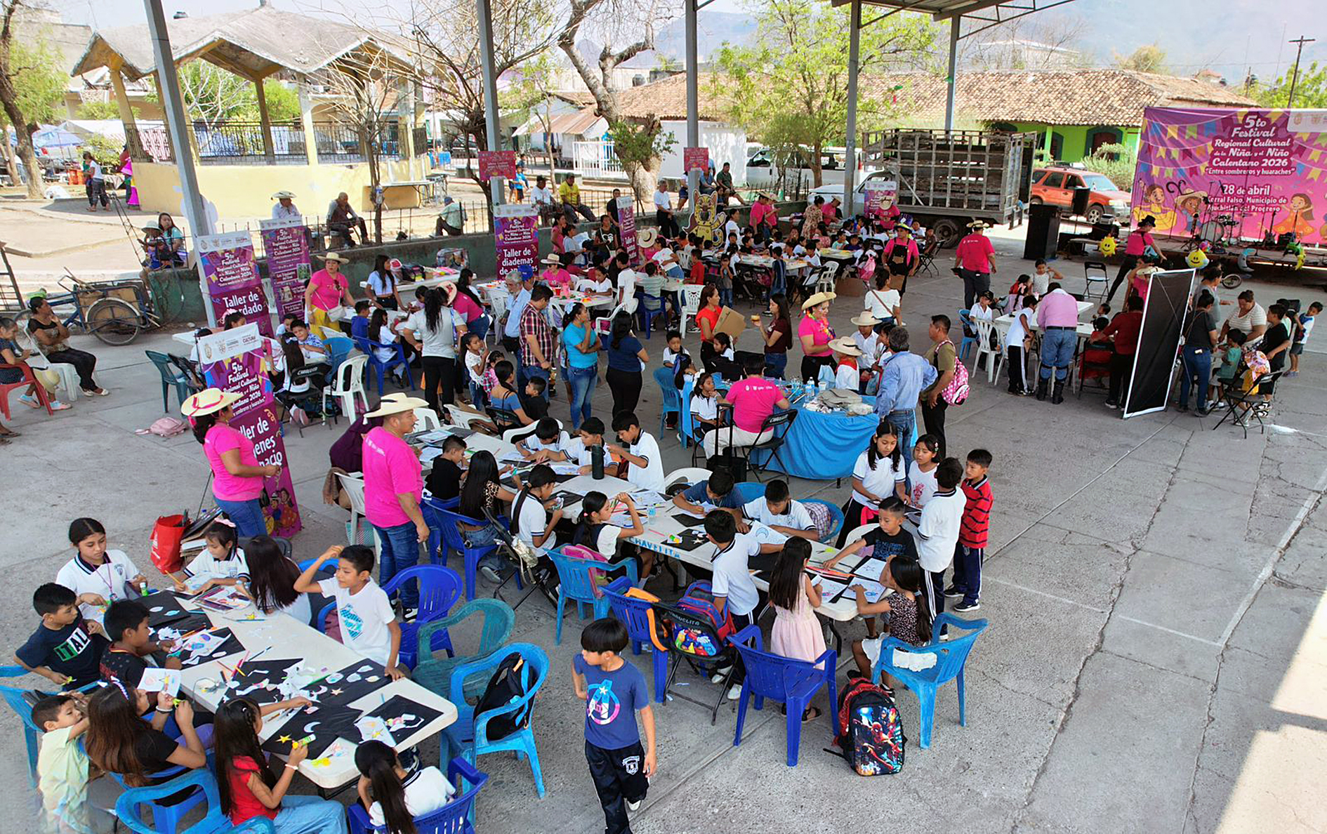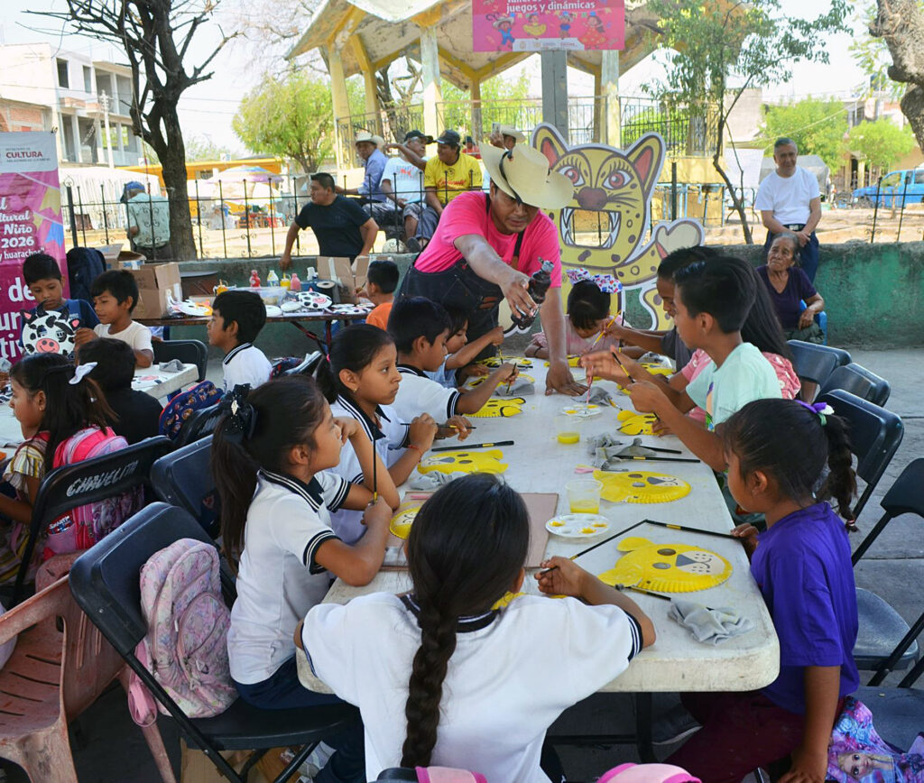Ajuchitlán, Gro., Niñas y niños de la comunidad de Corral Falso, municipio de Ajuchitlán del Progreso, en la región Tierra Caliente, disfrutaron del 5º Festival Regional Cultural de la Niña y el Niño Calentano 2026 “Entre sombreros y huaraches”, organizado por el Gobierno del estado a través de la Secretaría de Cultura, que dirige Aída Melina Martínez Rebolledo.