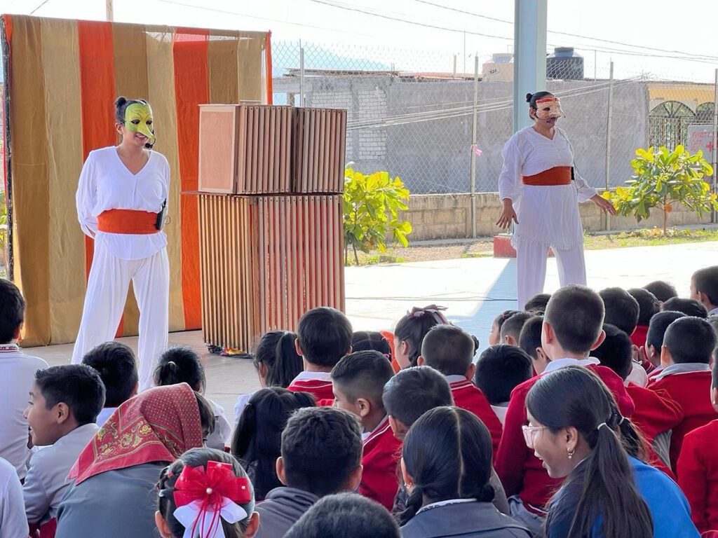 Chilpancingo, Gro., Con el objetivo de acercar el teatro, la danza a los niños y jóvenes de educación básica, la Secretaría de Cultura del Gobierno de México, a través del Instituto Nacional de Bellas Artes y Literatura (INBAL) y el Gobierno del estado y la Secretaría de Cultura estatal, pusieron en marcha el Programa Nacional de Artes Escénicas en tu Escuela en la primaria “Eucaria Apreza García” de Chilpancingo.