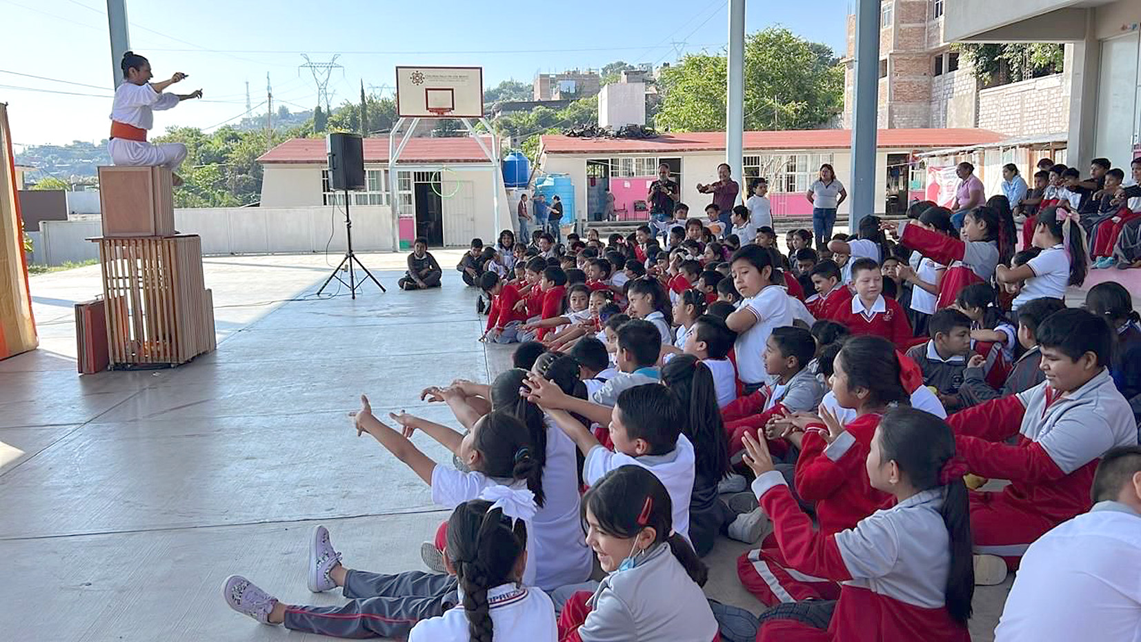Chilpancingo, Gro., Con el objetivo de acercar el teatro, la danza a los niños y jóvenes de educación básica, la Secretaría de Cultura del Gobierno de México, a través del Instituto Nacional de Bellas Artes y Literatura (INBAL) y el Gobierno del estado y la Secretaría de Cultura estatal, pusieron en marcha el Programa Nacional de Artes Escénicas en tu Escuela en la primaria “Eucaria Apreza García” de Chilpancingo.