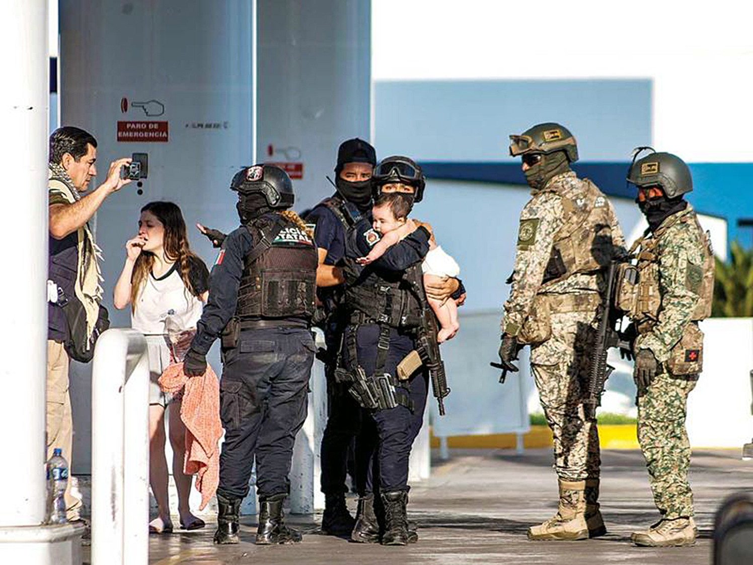 Algunos pistoleros lograron escapar corriendo a través de una plaza comercial cercana, donde fueron perseguidos por los militares, son ser detenidos.