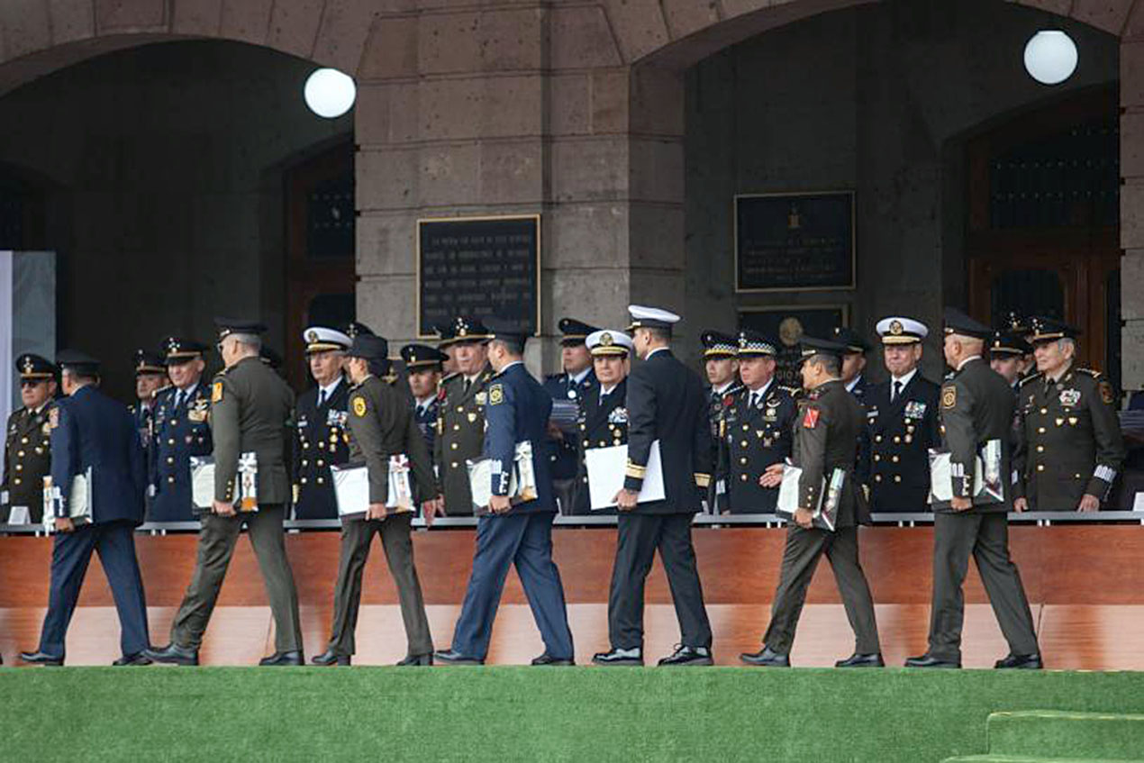Encabezaron la ceremonia el general Enrique Martínez López, subsecretario de la Defensa Nacional, y el almirante de Cuerpo General, José Barradas Cobos, subsecretario de Marina-Armada de México.