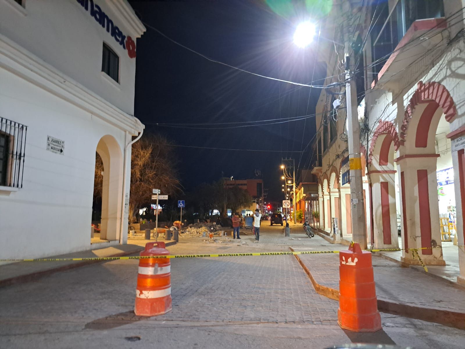 Cierran vialidad para cambiar adoquín en la calle Juárez