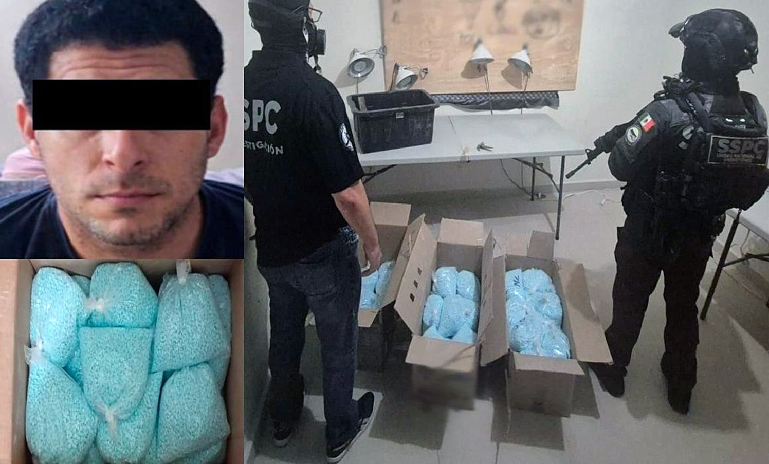 En los inmuebles fueron asegurados más de 270 kilos de fentanilo, tanto en polvo como en pastillas, lo que equivale a 14 millones de dosis.