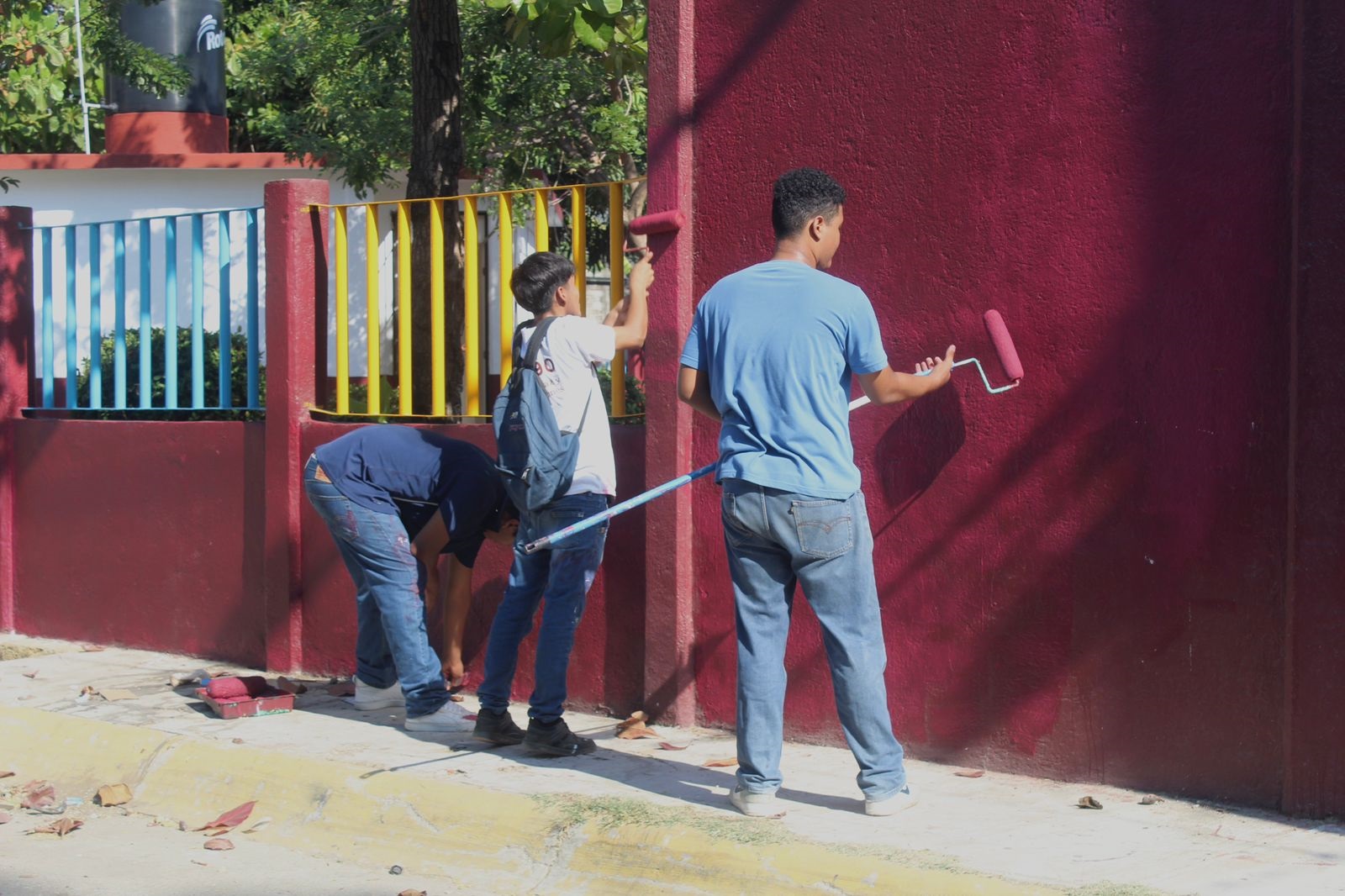 La comunidad también se integra a estas labores, con la participación de estudiantes del CETIS 90 que, a través de su servicio social, apoyan en jornadas de mantenimiento y cuidado, lo que fortalece el sentido de pertenencia y contribuye a la preservación de las áreas recreativas.