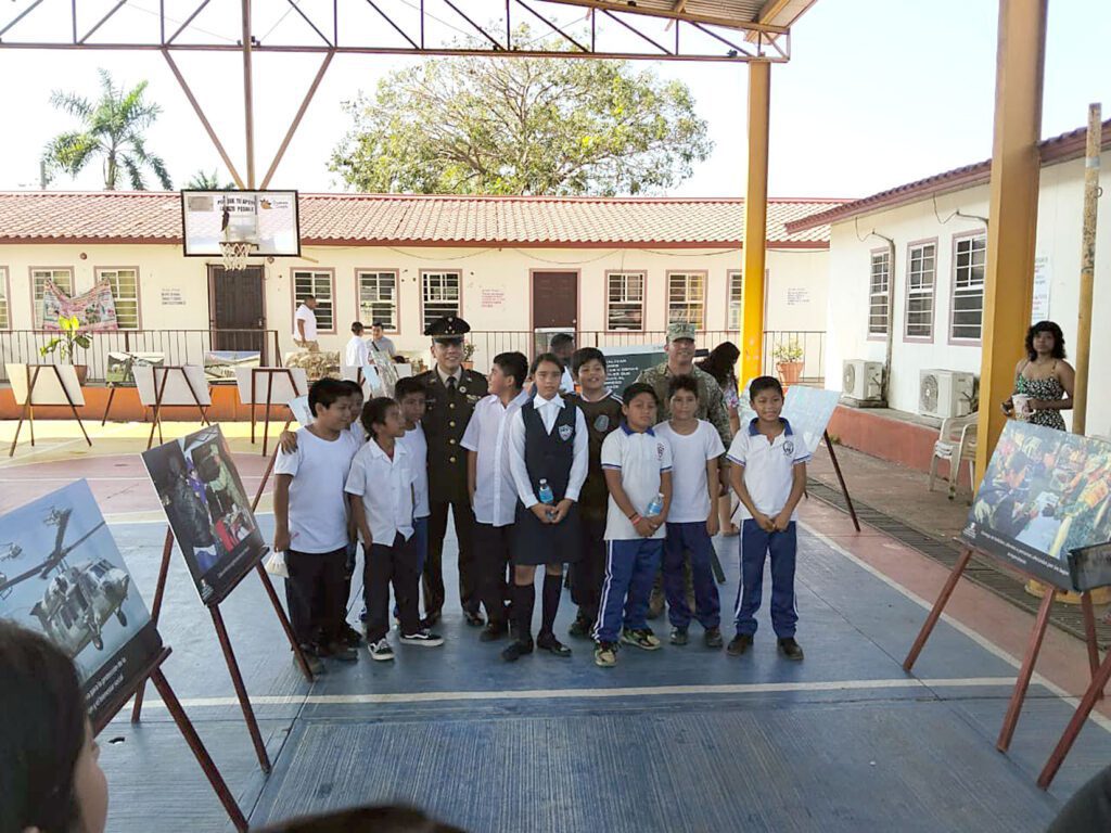 Asimismo, en la Escuela Primaria “María Faustino Benítez”, en San Nicolás, Coyuca de Benítez, se instaló la exposición fotográfica “Honor en Cada Misión”, donde docentes, alumnas, alumnos y padres de familia conocieron las distintas labores que realiza el personal militar en cumplimiento de sus misiones.
