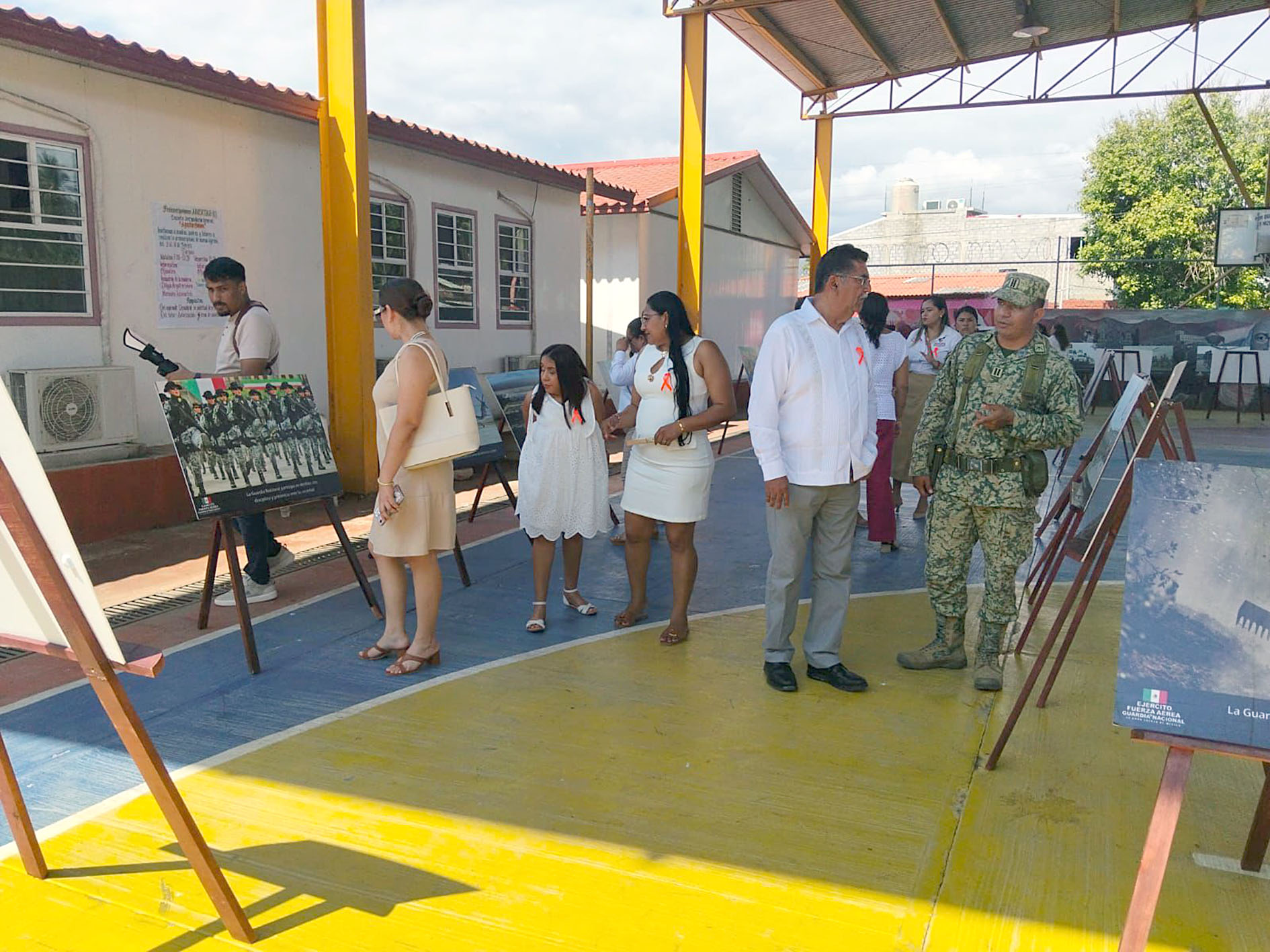 Asimismo, en la Escuela Primaria “María Faustino Benítez”, en San Nicolás, Coyuca de Benítez, se instaló la exposición fotográfica “Honor en Cada Misión”, donde docentes, alumnas, alumnos y padres de familia conocieron las distintas labores que realiza el personal militar en cumplimiento de sus misiones.