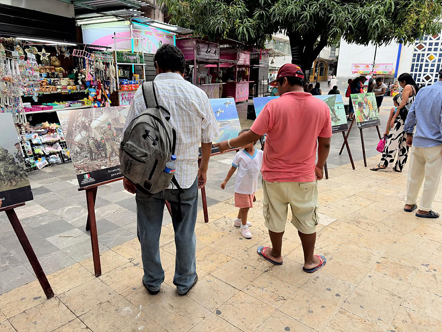 Acapulco, Gro., En el Zócalo de Acapulco fue inaugurada la exposición fotográfica “Honor en cada Misión”, una muestra que acerca a la sociedad guerrerense al trabajo y compromiso de las Fuerzas Armadas Mexicanas.