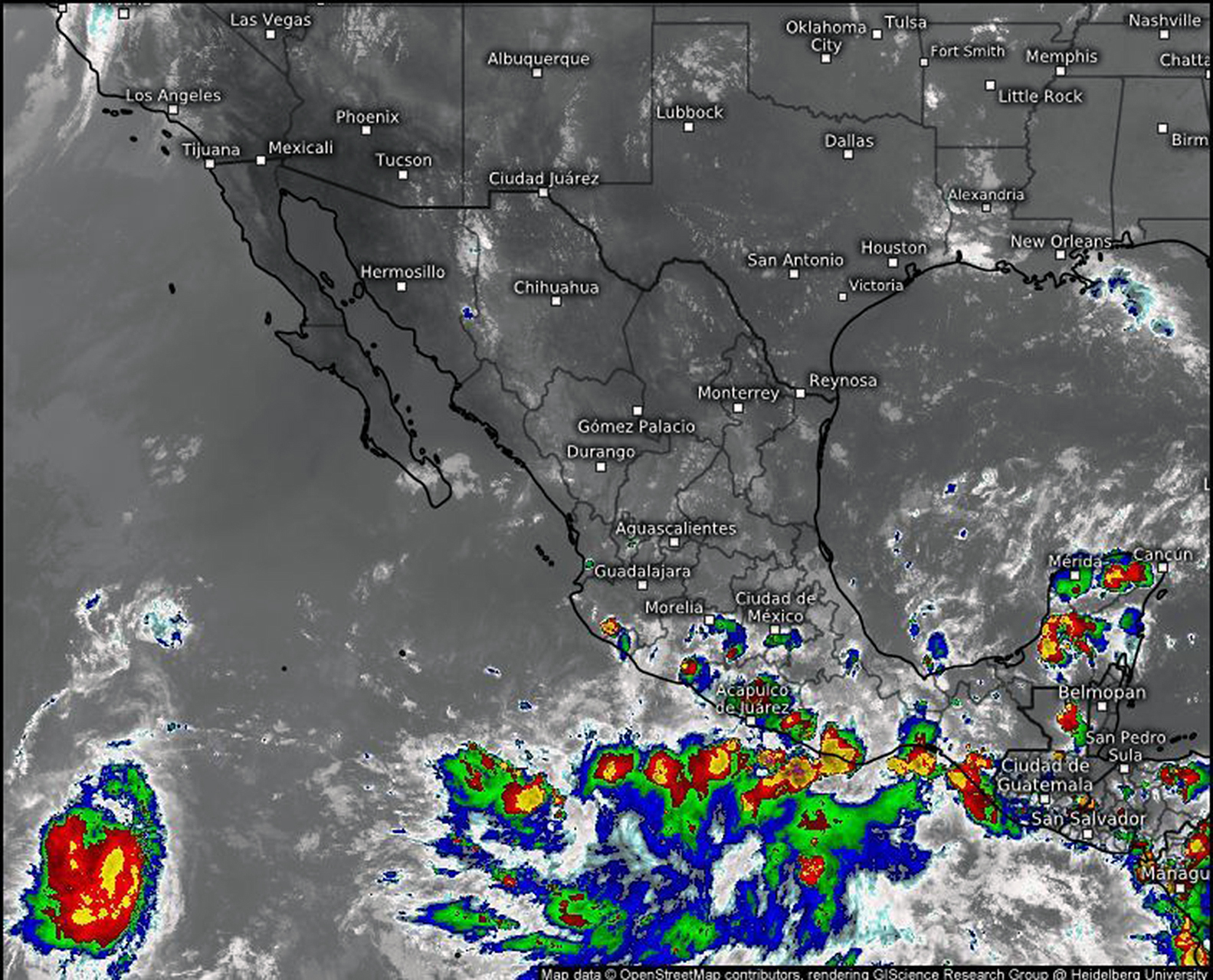 Las precipitaciones podrían registrarse principalmente durante la tarde y noche en las diferentes regiones del estado de Guerrero, acompañadas de actividad eléctrica, posible caída de granizo en las partes altas y rachas de viento de 50 a 70 kilómetros por hora, así como la presencia de oleaje de 2.5 a 3.5 metros de altura.