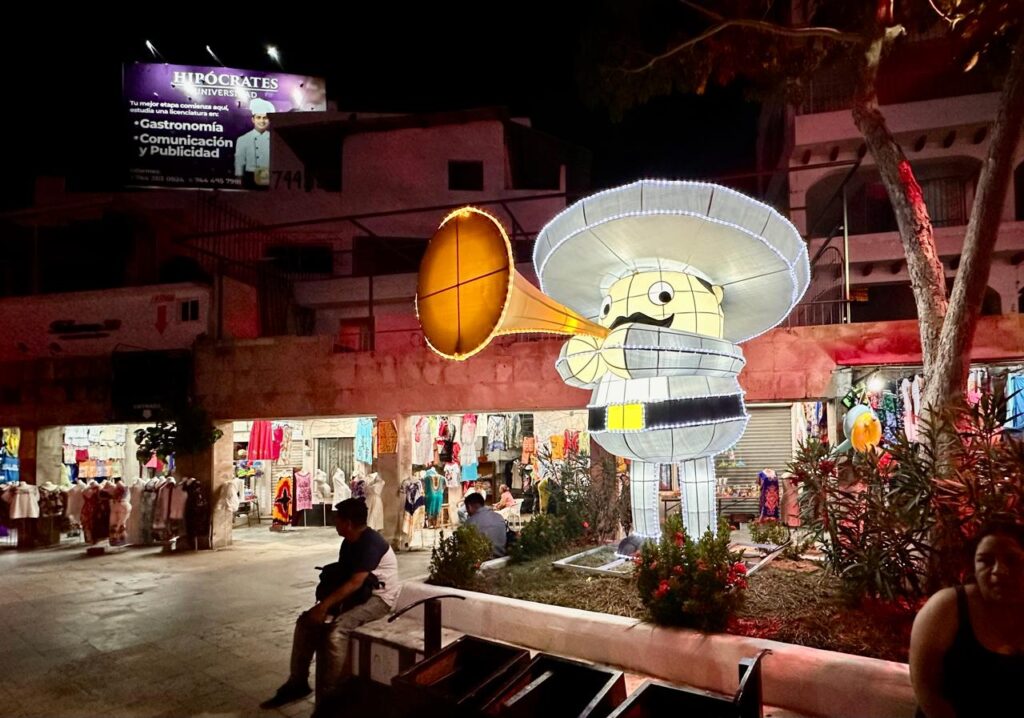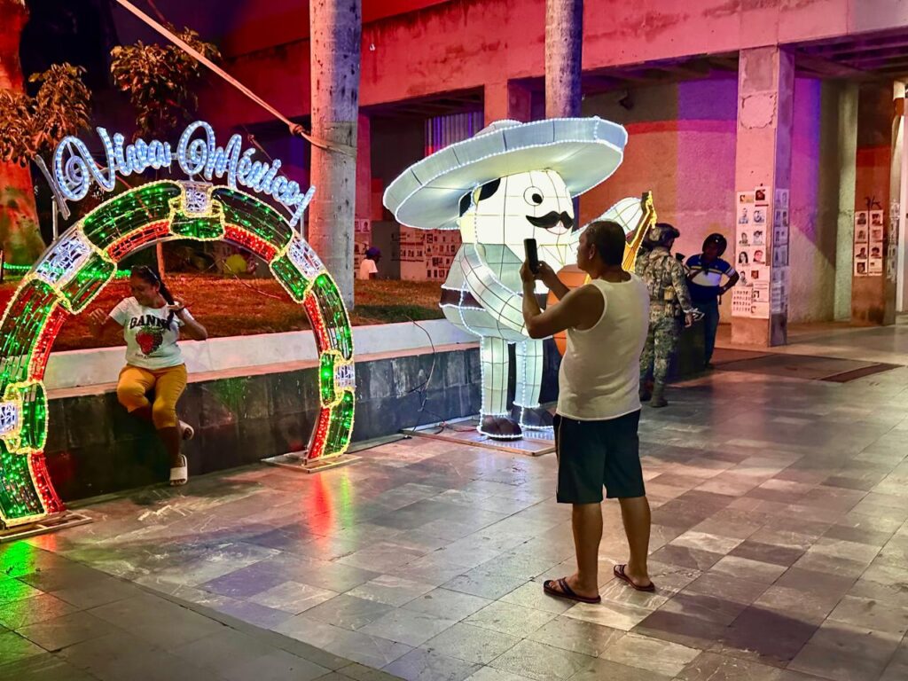 Acapulco, Gro., 08 de septiembre de 2025.- Con motivo del 215 aniversario del inicio de la Independencia de México, el gobierno municipal embellece las principales zonas de Acapulco con figuras iluminadas y elementos decorativos que realzan el corazón del puerto con los colores patrios y símbolos que evocan el orgullo nacional.