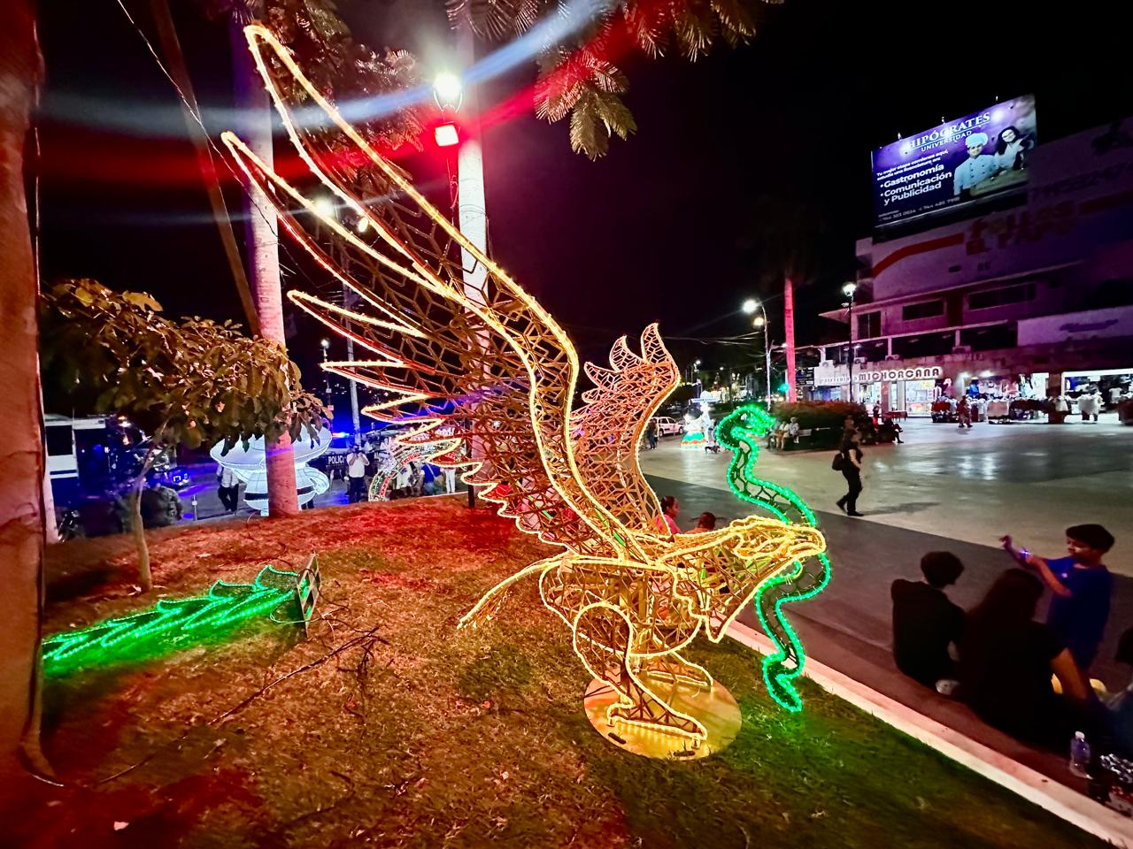 A través de la Coordinación General de Servicios Públicos Municipales, y por conducto de la Dirección de Alumbrado Público, se instalaron más de 30 mil luces LED distribuidas en figuras representativas como charros, águilas, serpientes, adelitas y un arco monumental con la leyenda “¡Viva México!”, que ya forman parte del entorno visual de avenidas y puntos de la ciudad.