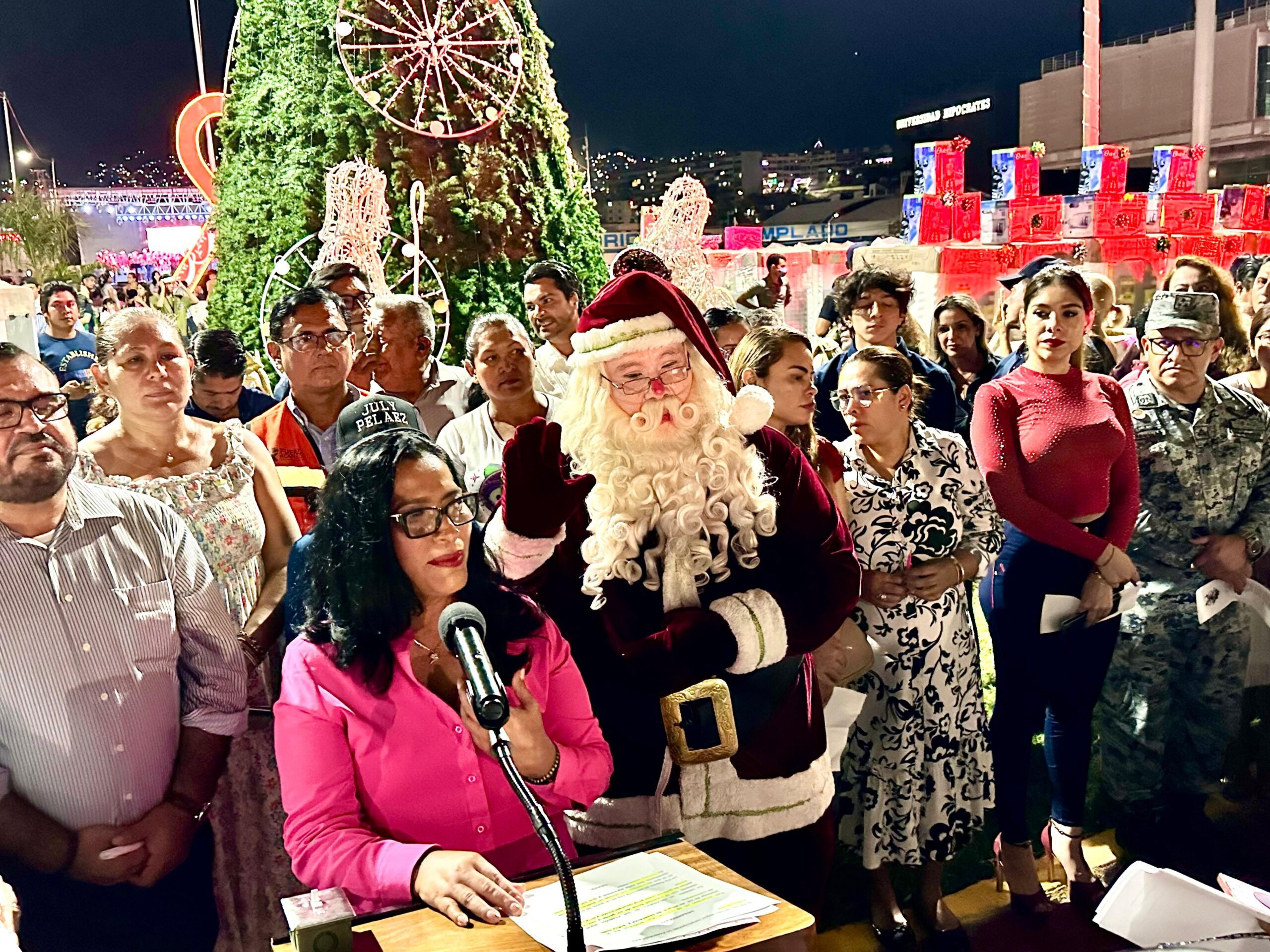 Acapulco, Gro., Diciembre 17.- Con un mensaje de paz y esperanza, la presidenta municipal Abelina López Rodríguez encendió el Árbol Navideño Monumental instalado en la Vía Rápida, ante cientos de acapulqueños que se dieron cita para celebrar la temporada decembrina.